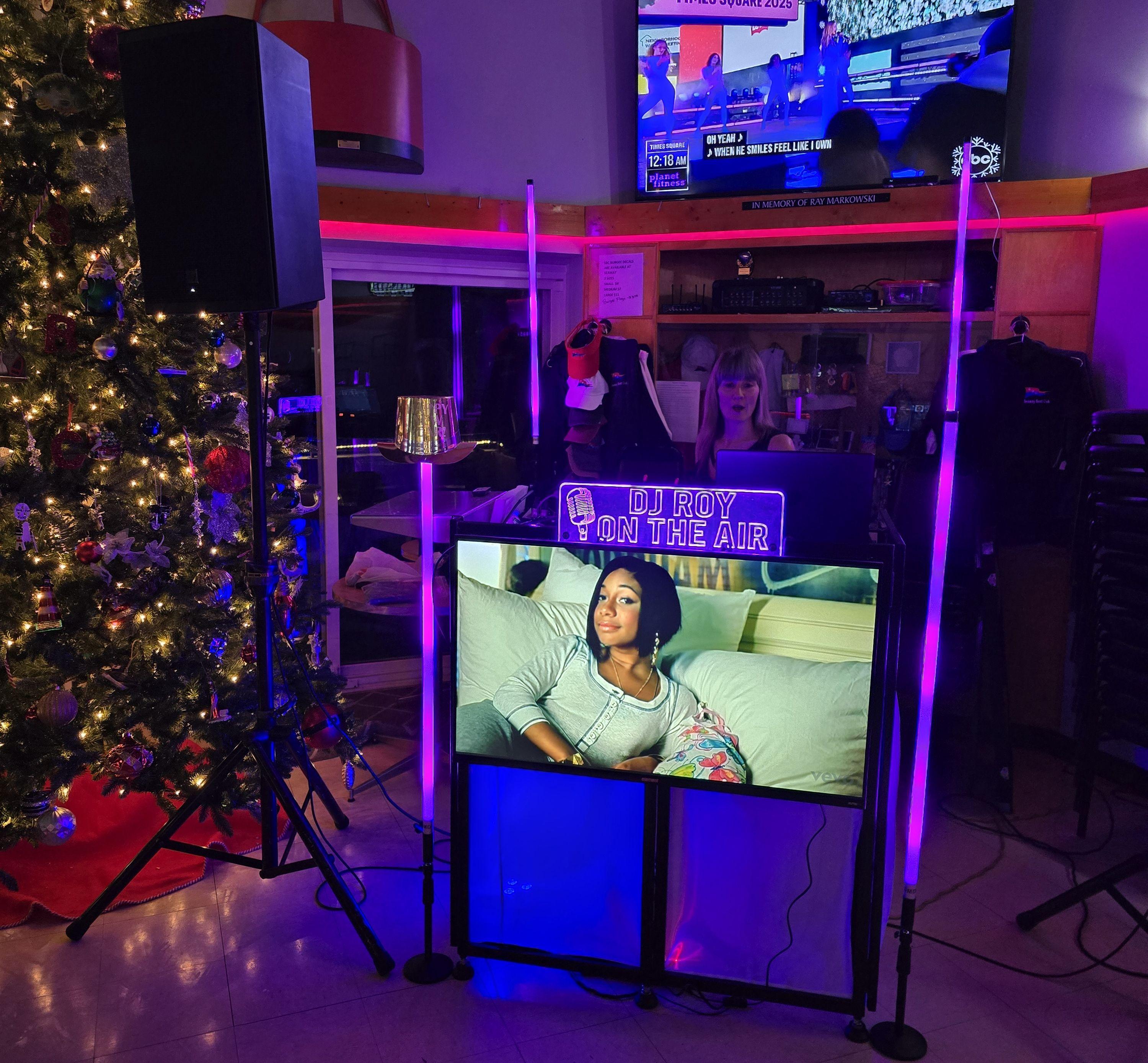 6hrs of music. Ceremony music Cocktail hr Video display Dancing on the cloud Advanced lighting pkg QR Code for guest song request.