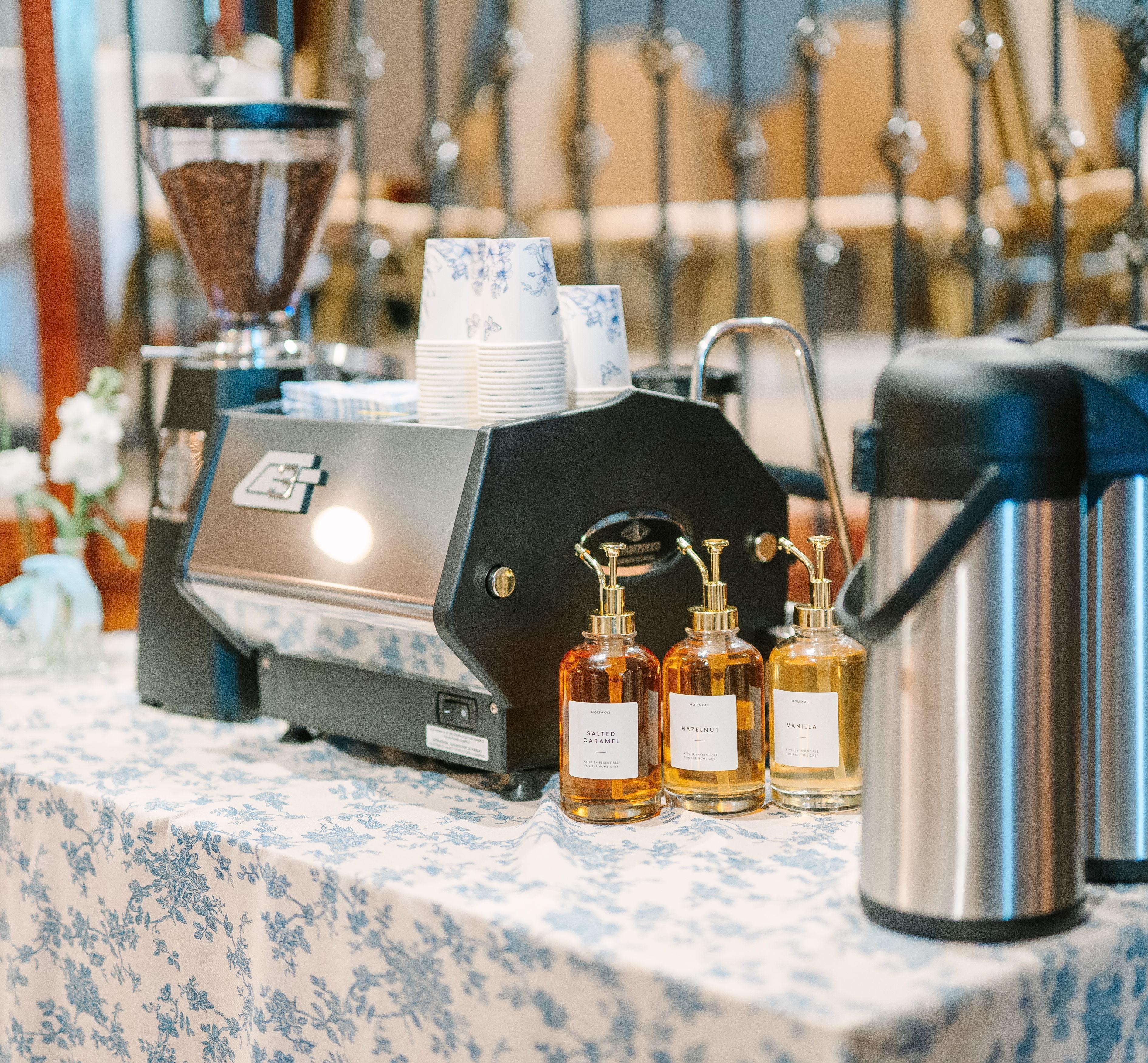 We offer personalized options to elevate your celebration experience. We can use your favorite local coffee shop blend that can be served in personalized coffee cups. We also have branded cart options in order to fit into any style of event or celebration.