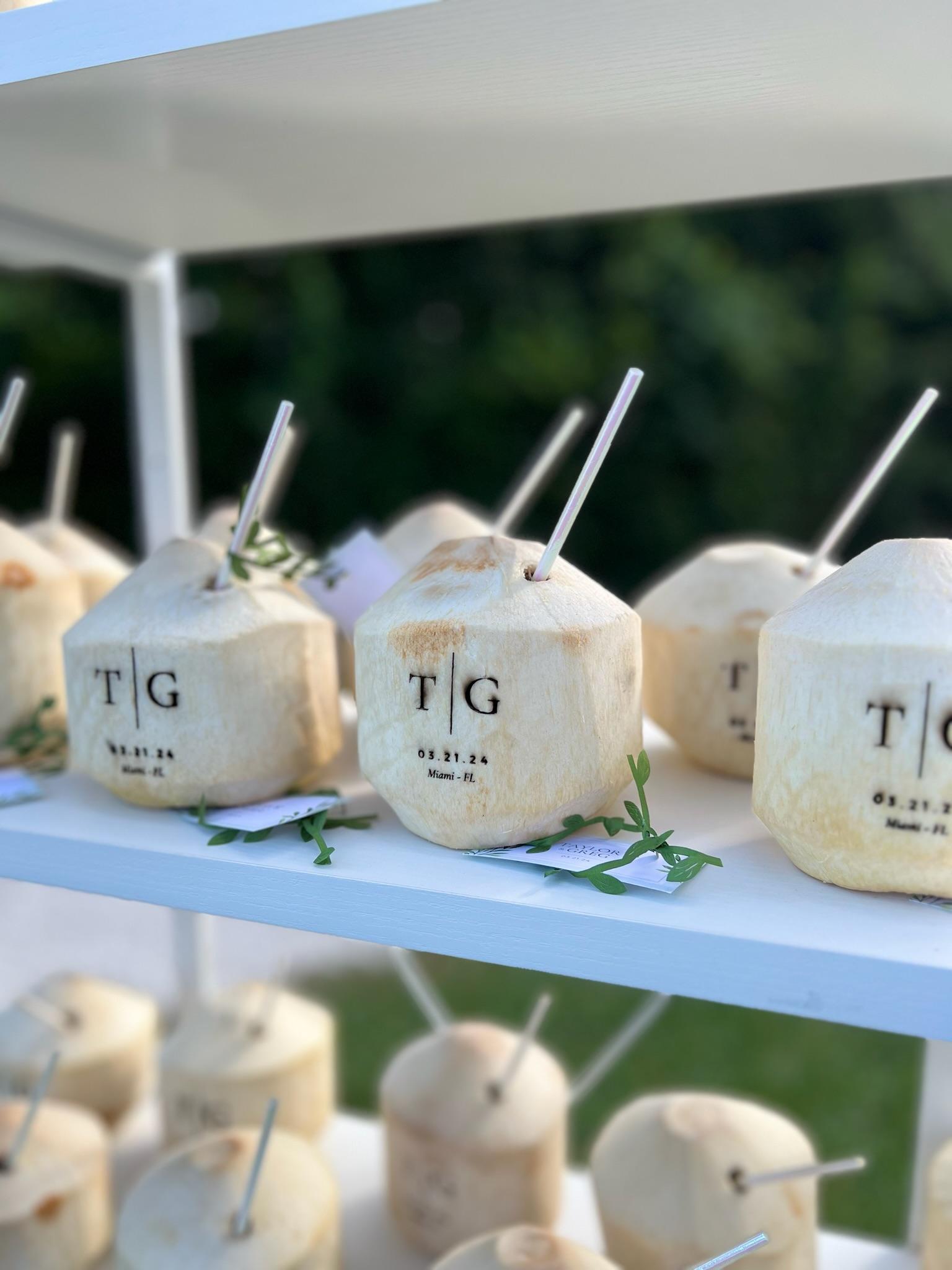 This was an amazing and unique detail we added to our wedding! Our guests loved the coconuts and said they were delicious! Working with this vendor was so easy! They were very helpful and communicated with us quickly! Beautiful engraved coconuts for any event!