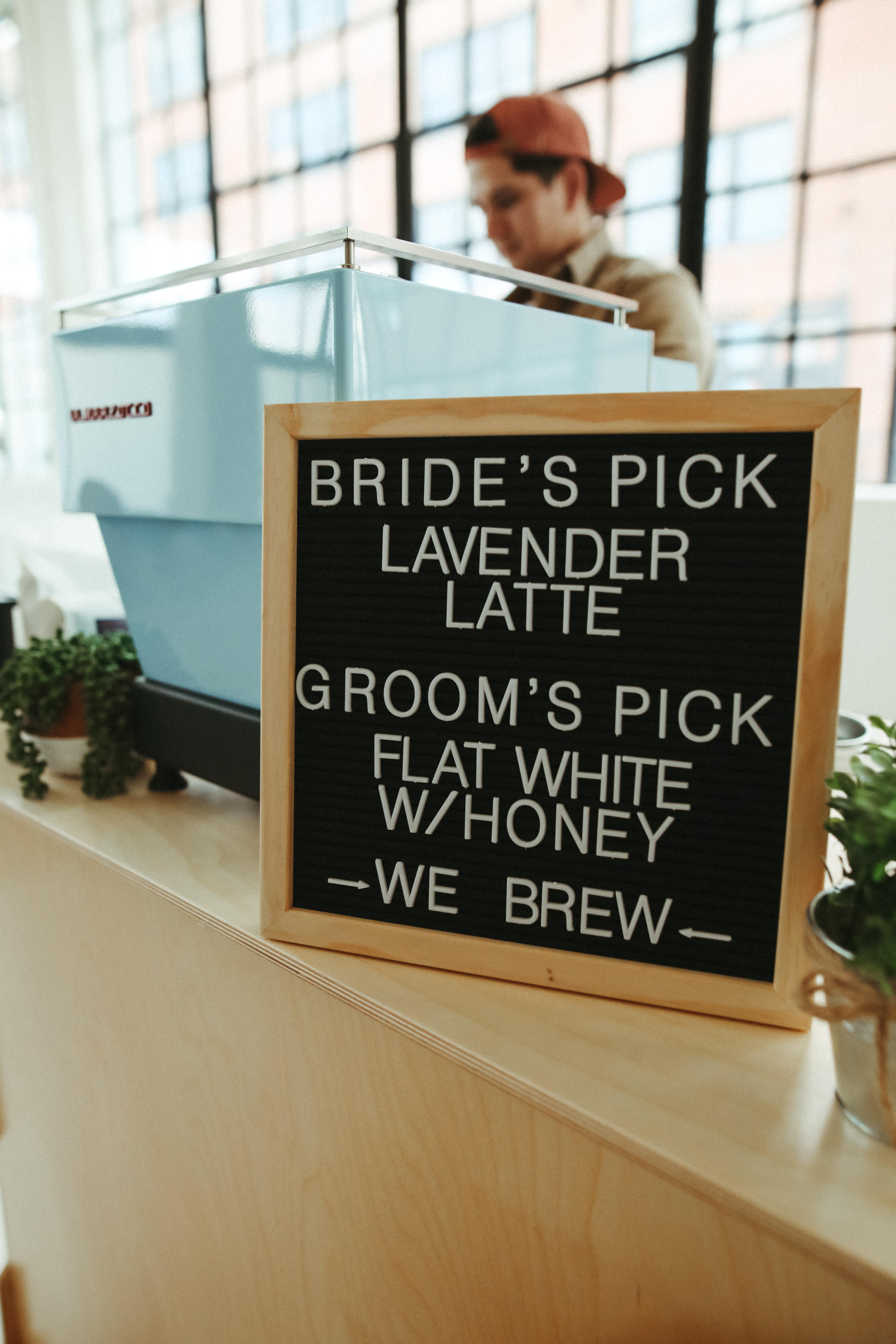 Not just one, but two expert baristas will show up with our cafe-inspired coffee cart, serving all of your favorites from vanilla cold brew to mocha lattes. The team of two will serve all the high-quality products with friendly service and speed. We'll be working extra hard to keep the line moving so everyone can stay focused on what's important: celebrating your big day.