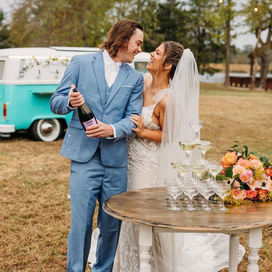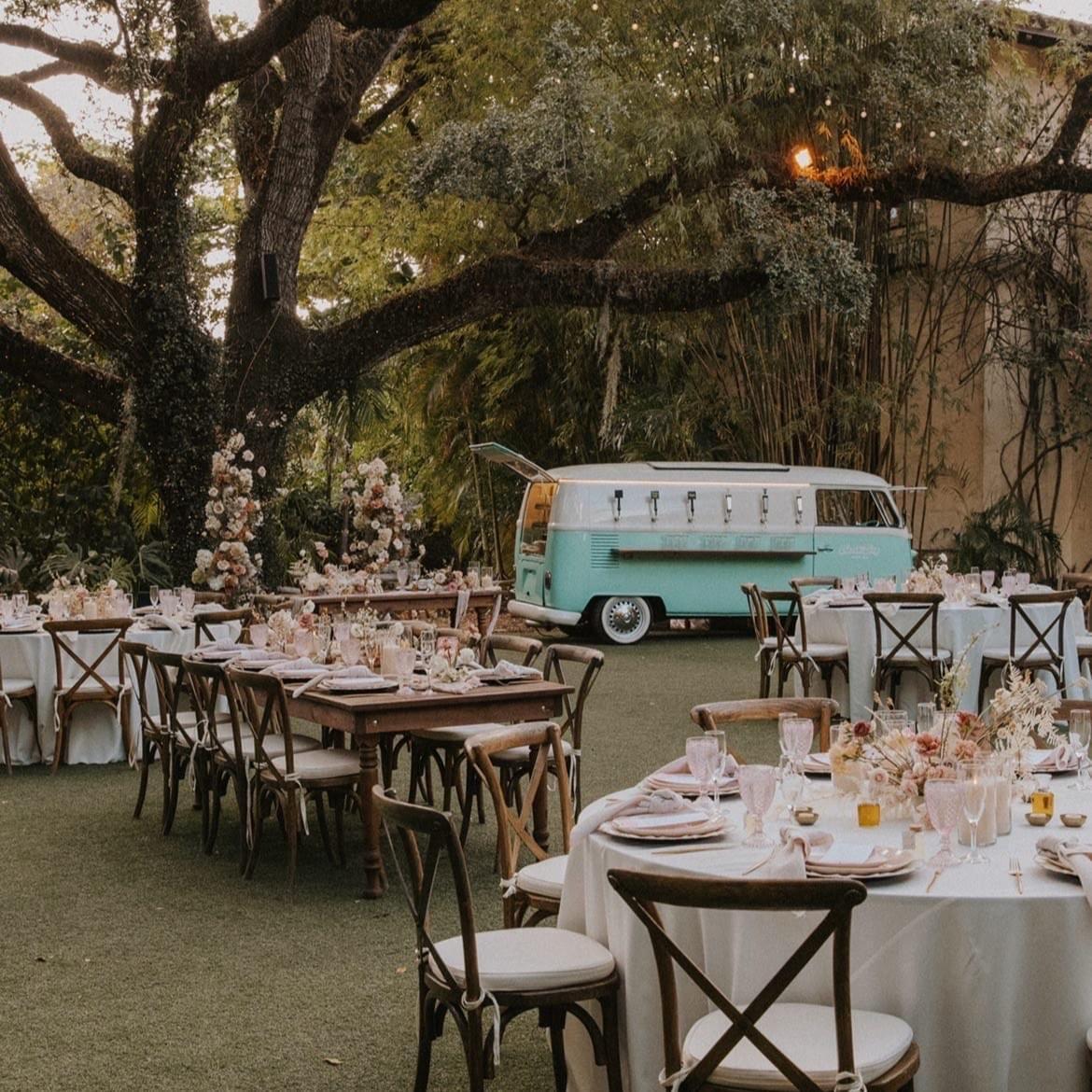 Here’s why we think Kombi Keg will make your wedding unforgettable: • One-of-a-Kind Mobile Bar: Picture a vintage teal & white 1976 Volkswagen MicroBus, completely reimagined into a mobile bar. • 6-Tap System: Pour up to 6 different ice cold beverages at once—perfect for a mix of beer, wine, cocktails, mocktails, cold brew, kombucha, lemonade, tea and more! • 55” Pop-Up Smart TV: Stream a slideshow of the happy couple, share fun memories, or even tune into the game or your favorite tv show.