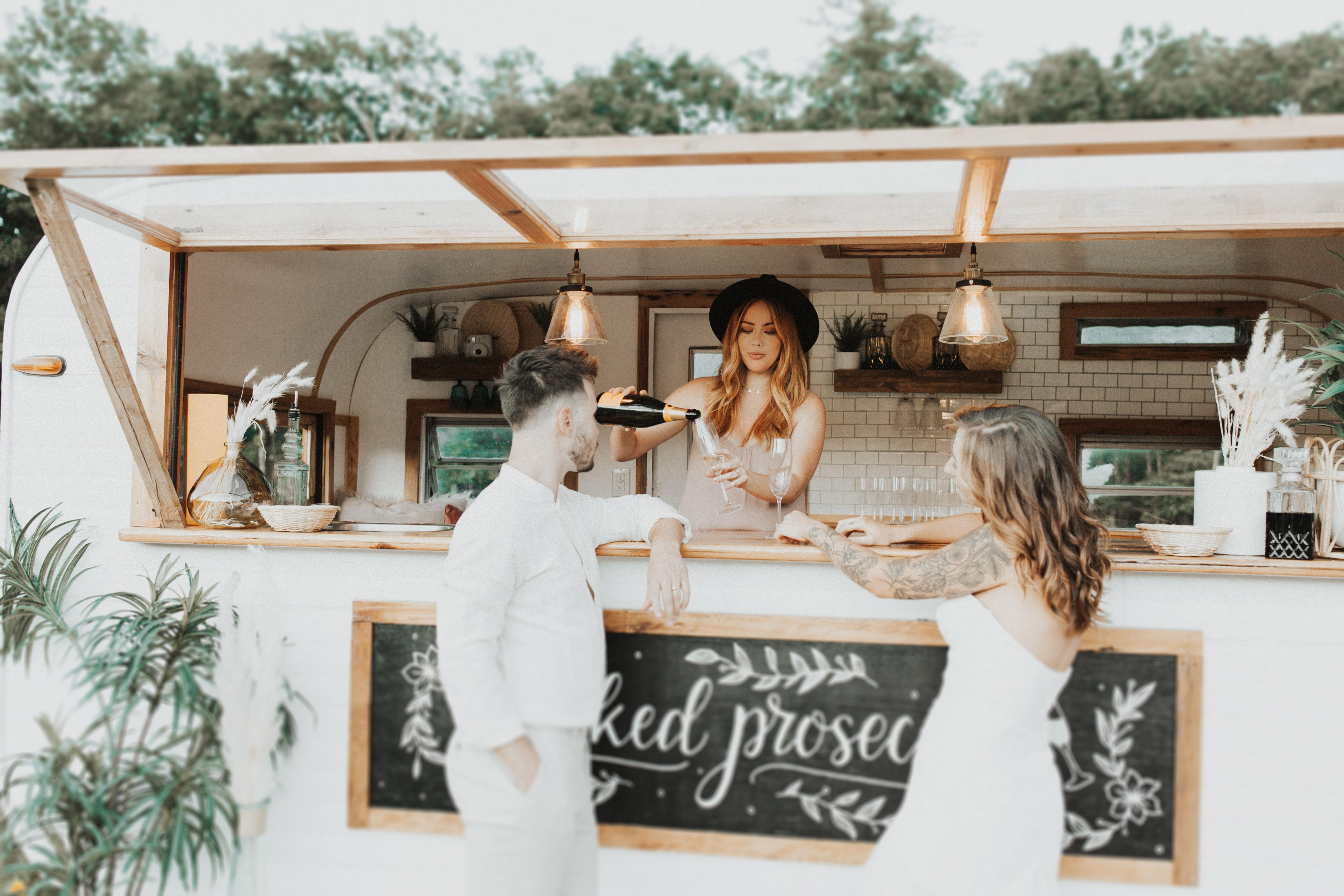 Meet Tilly, a restored 1968 Go Tag-A-Long camper converted into a chic mobile bar. Our dreams became a reality when we, My husband Rob and I transformed our vintage trailer into a celebration company. We preserved the original bones, added a new fresh coat of paint, a serving window, and modern fixtures. Tilly is ready to celebrate and is loaded with charming additional items, including vintage peacock chairs, gorgeous floral decor, a water cooler station, and handcrafted prosecco cocktails. Did I mention we also make a killer Sangria?