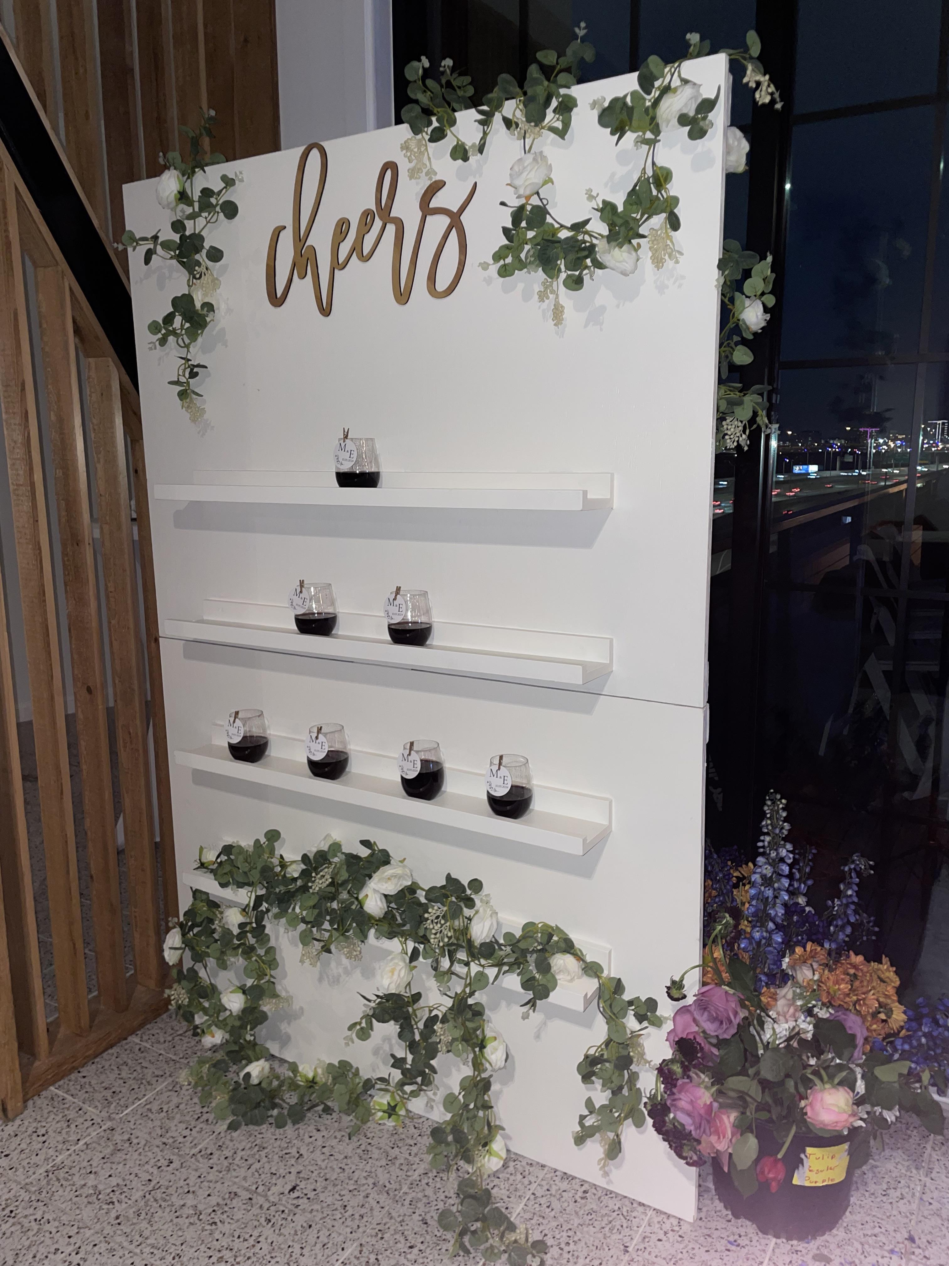 We create beautiful and delicious cocktails and drinks, but the drinks are the easy part! Pourfessionals offers more with a beautiful aesthetic and customized aspects like labeled cups and wine toppers with the couples initials! We also offer additional things that will absolutely amplify your most important day like our Cheers Wall for wine, champagne, or shots! Not to mention our amazing bar setups !