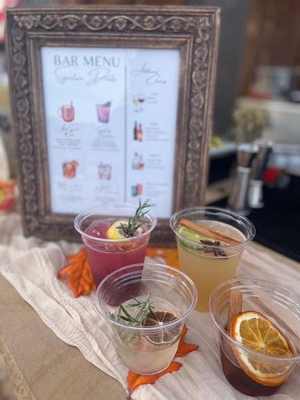 Service of a drink menu of 2 signature craft cocktails, beer, wine and hard seltzers