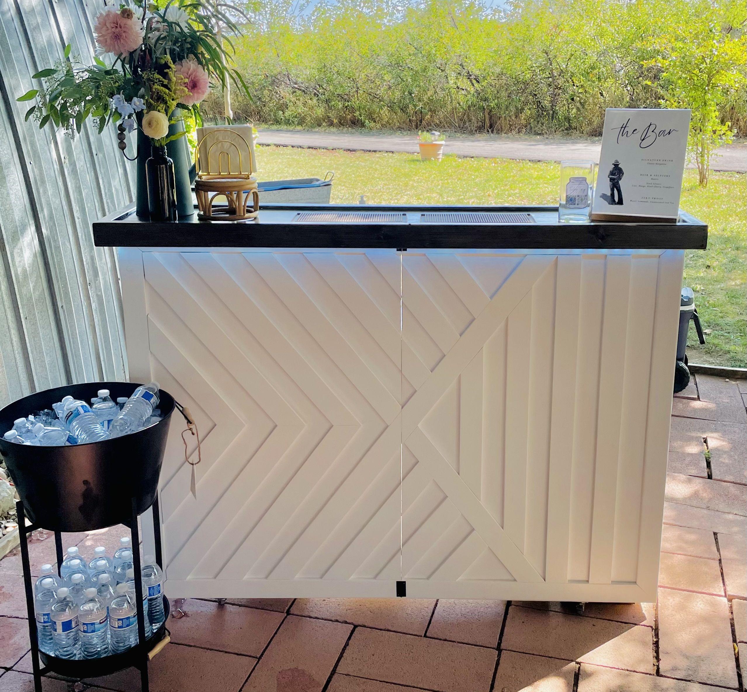 Our beautiful wheeled bar cart ready to serve a welcome glass of bubbly or share a special toast. Can even be set up as a mimosa bar for an additional fee!! Ask about our coffe and donuts, hot cocoa, and frose set up!