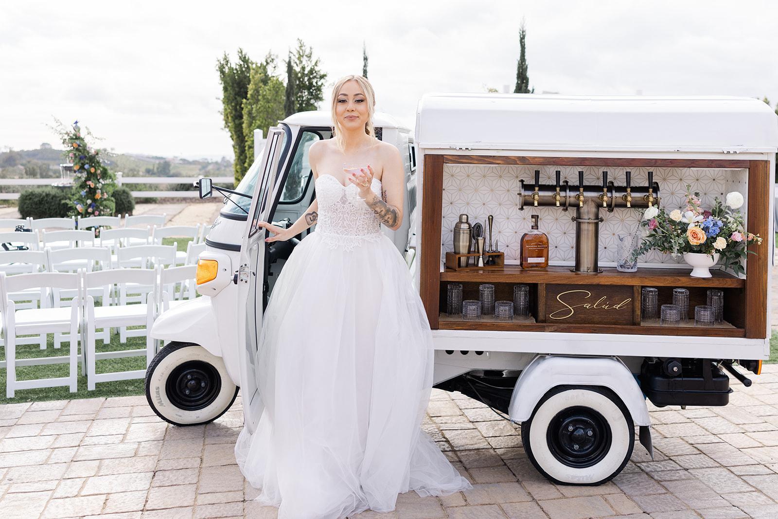 2 Hour Rental of The Vespa Bar Pamina Satellite Bar Built in 4 Tap system for additional drinks (added cost) 1 Bartender Complimentary Consultation 2 Signature Batched Cocktails (can add 3rd and 4th cocktails for additional fee) Ice, Mixers, Garnishes, Cups, Napkins, Straws Customized Drink Planning Setup, Tear Down, Clean Up Liquor Liability Insurance General Liability Insurance