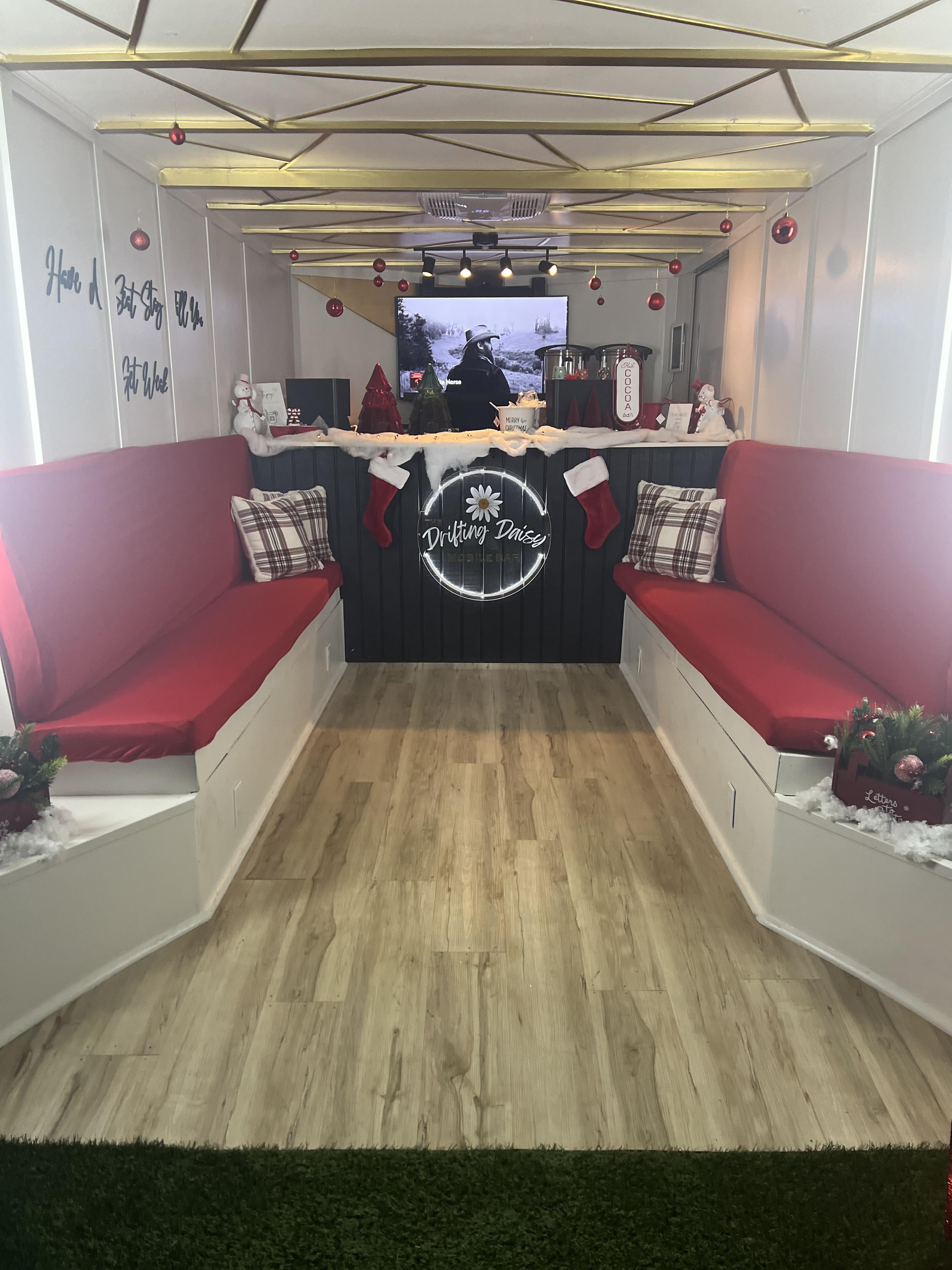 How are we so unique in this market you might ask? We offer an enclosed trailer that doubles as a lounge. It is climate-controlled, making it suitable for all seasons, and comes equipped with a TV and surround sound system that can be used for music, game day, or even slideshows for any event. We also have an attached patio and extra outdoor seating if needed. In addition, we have two portable mobile bars on wheels that can be used, named Daisy's Sip Station and Tony's Pit Stop. If you prefer to have bartending services only, we can provide that too. We take pride in being TABC permitted and carrying general and liquor liability insurance.