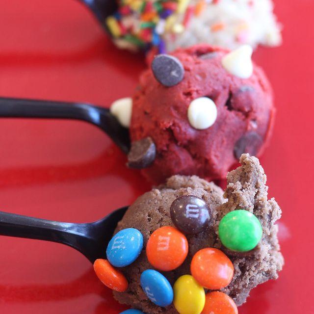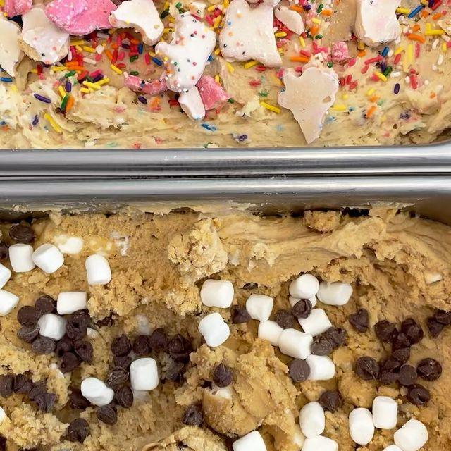 There are also options to make a sundae, or our unique “Dream Crème (cookie dough infused ice cream) with your favorite cookie dough and ice cream, cookie dough milkshakes and of course melt-in-your-mouth cookie dough pretzel bites and snickerdoodle bites.