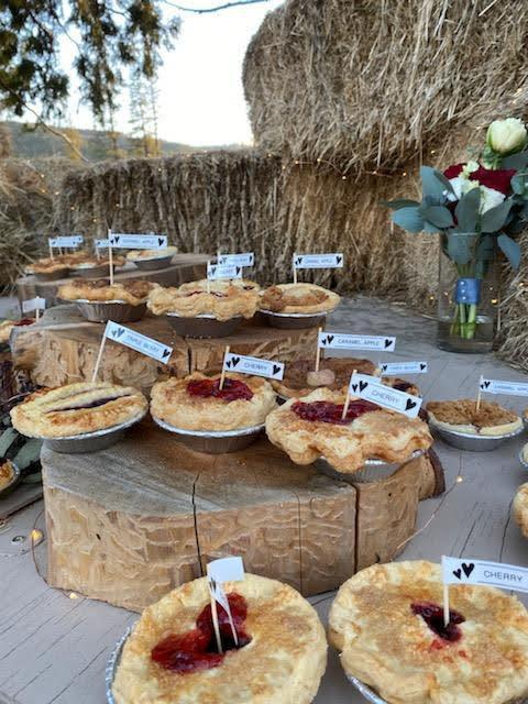 This package starts at 600.00 for 100 cinnamon rolls in your choice of 3 flavors. They are individual packaged with a compostable fork tied on with a ribbon matching your wedding decor. Serve them at the reception on you dessert table, give them as wedding favors, serve them to your overnight guests the morning of the wedding or have them shipped to your wedding party as your "Will you roll with me on our wedding day" request. (Shipping is extra)