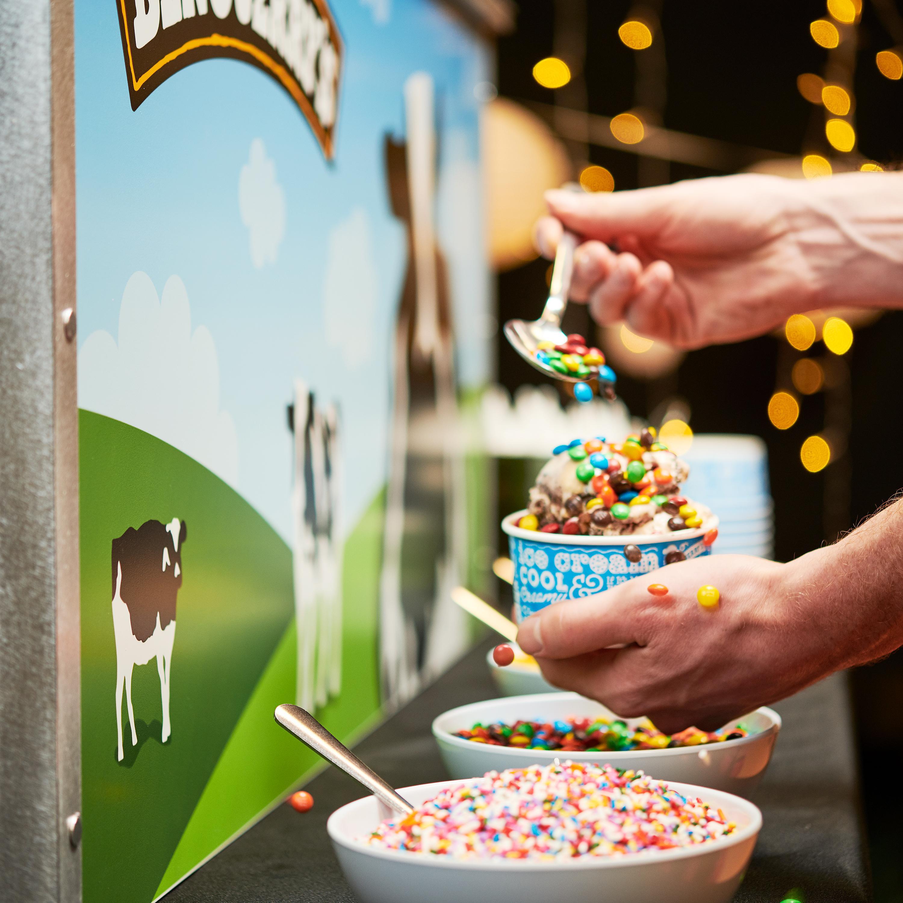Ben & Jerry’s Ice Cream Catering specializes in serving your favorite flavors in cups, cones, and sundaes to turn your next gathering into an ice cream extravaganza. We show up and do it all—all you do is eat ice cream and party on. We love making ice cream—but using our business to make the world a better place gives our work its meaning. Guided by our Core Values, we seek in all we do, at every level of our business, to advance human rights and dignity, support social and economic justice for historically marginalized communities, and protect and restore the Earth's natural systems. In other words: we use ice cream to change the world.