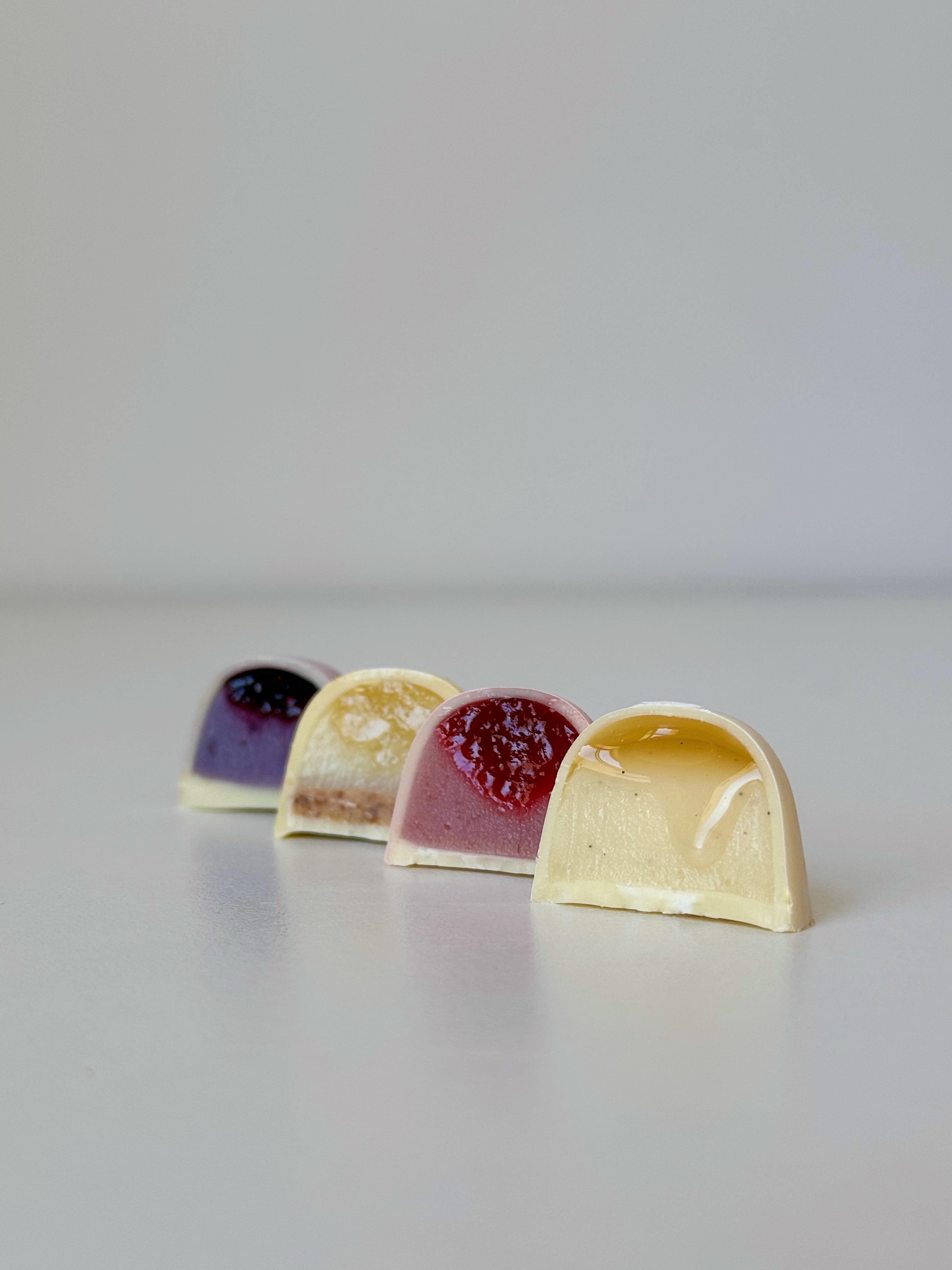 Our luxury boxes of two handmade bonbons can surpass all the guests at your wedding. We offer four different flavors as a part of our wedding collection: Blueberry yogurt Lemon pie Raspberry-rose Vanilla-Champagne We hope you’ll give us an opportunity to make your special day a little sweeter!