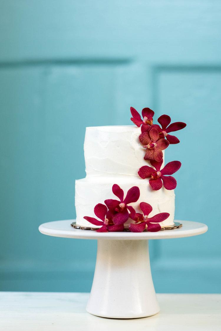 Designed to celebrate natural beauty from the inside out, our cake layers are baked with organic eggs and local ingredients including tri-color carrots, seasonal berries, and even local spirits and craft beer from time to time. We use botanical extracts to naturally color buttercream and style our cakes with wild foraged edible flowers, freshly-plucked herbs, culinary greens and blushing fruits on the vine.