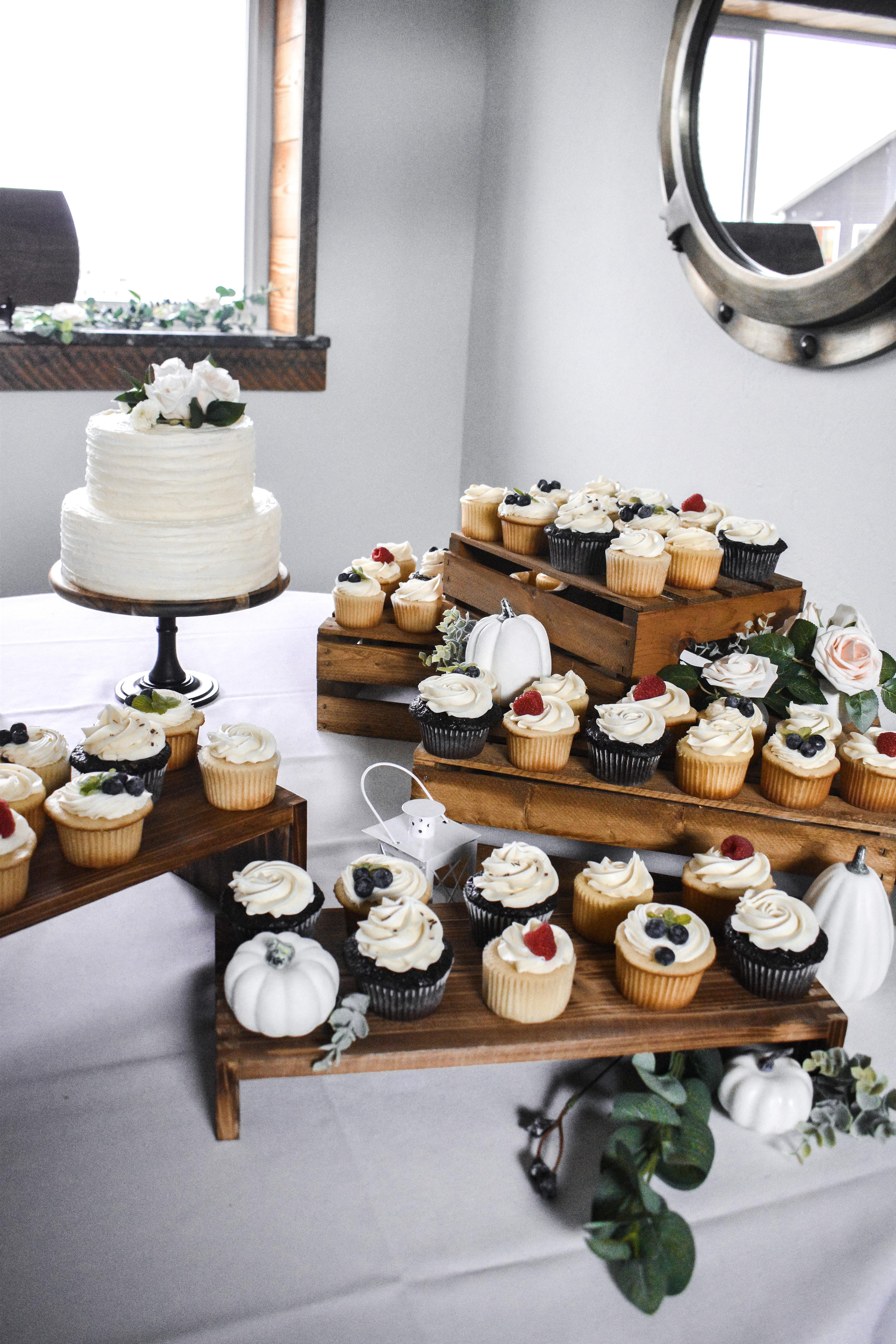 I charge $8.00 for a set of 4 cupcakes with the same flavor of cake, filling and frosting. You can order how ever many flavors you would like. If you chose to order your wedding cake from me, the price of the first two boxes of cupcakes comes off the price of your total bill.