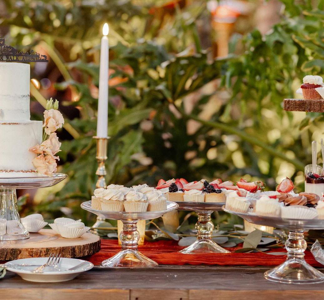 Book your dream Cake for your small Wedding. Surprise your guest with a stunning three tier cake and the perfect dessert. ZOLA COUPLE EXCLUSIVE PRICE! Dessert options: (Mini Cupcakes, Panna Cotta Shooters, Cake Truffles, Mini Cheesecakes, Choc. Covered Oreos, Mini Tartlets, Mini Conchas, Mini Tres Leches) Add. Info: Cake price may increase depending on the design. Delivery not included, price based on Venue location. Additional desserts may be purchased with Package deal.