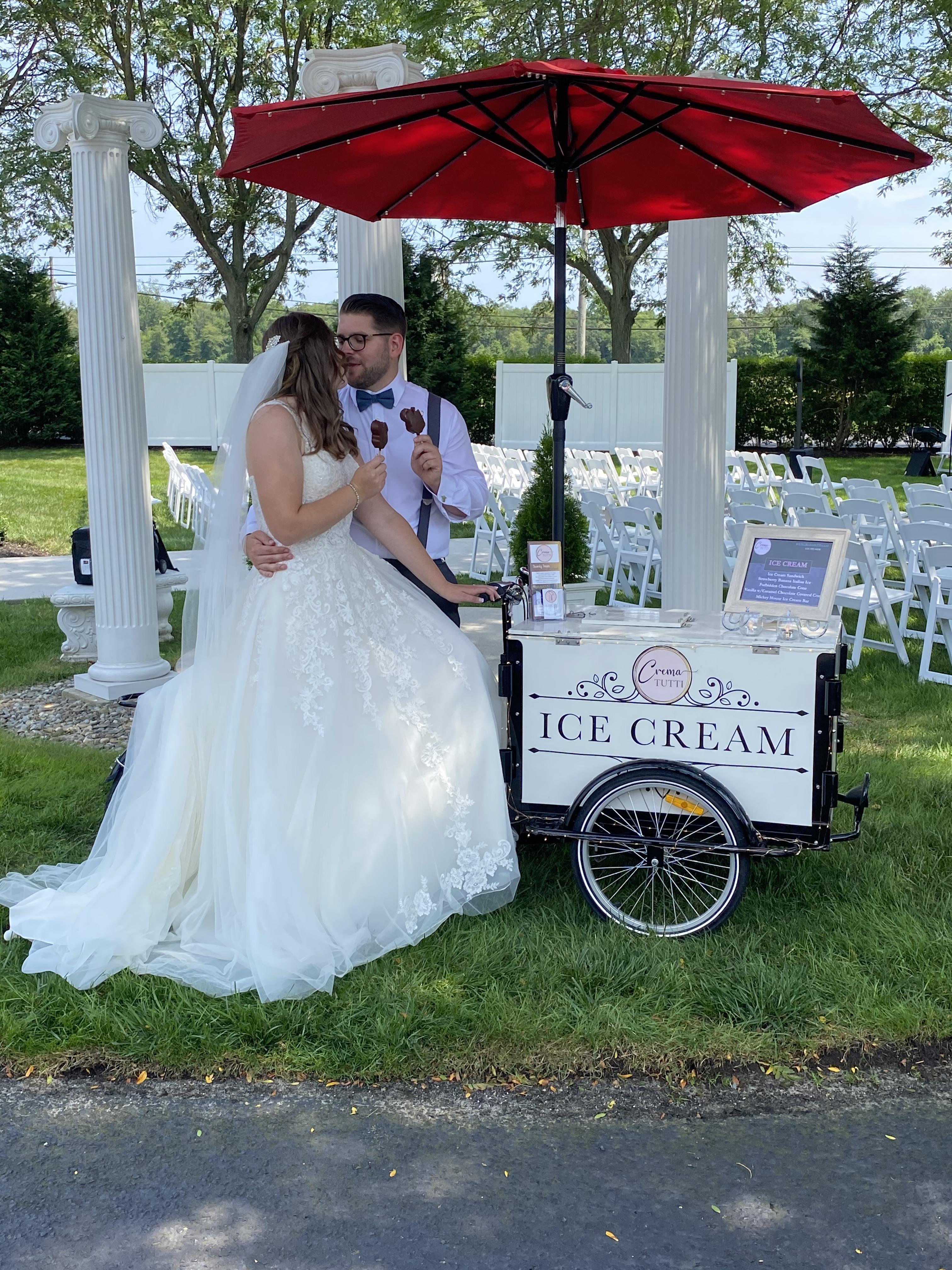 We had the pleasure of having Crema Tutti and their vintage ice cream bike cart at our wedding, and it was hands-down one of the highlights of the day! The cart itself was beautifully designed, adding the perfect touch of nostalgia and charm to our event. The ice cream was absolutely delicious, with a fantastic variety of flavors that had our guests raving. The service was impeccable—Crema Tutti was professional, friendly, and went above and beyond to ensure everything ran smoothly. From setup to serving, they made the experience effortless and fun. Our guests are still talking about how much they loved this unique addition to our wedding! If you’re looking for something special to delight your guests, I highly recommend Crema Tutti. They truly made our day extra sweet!