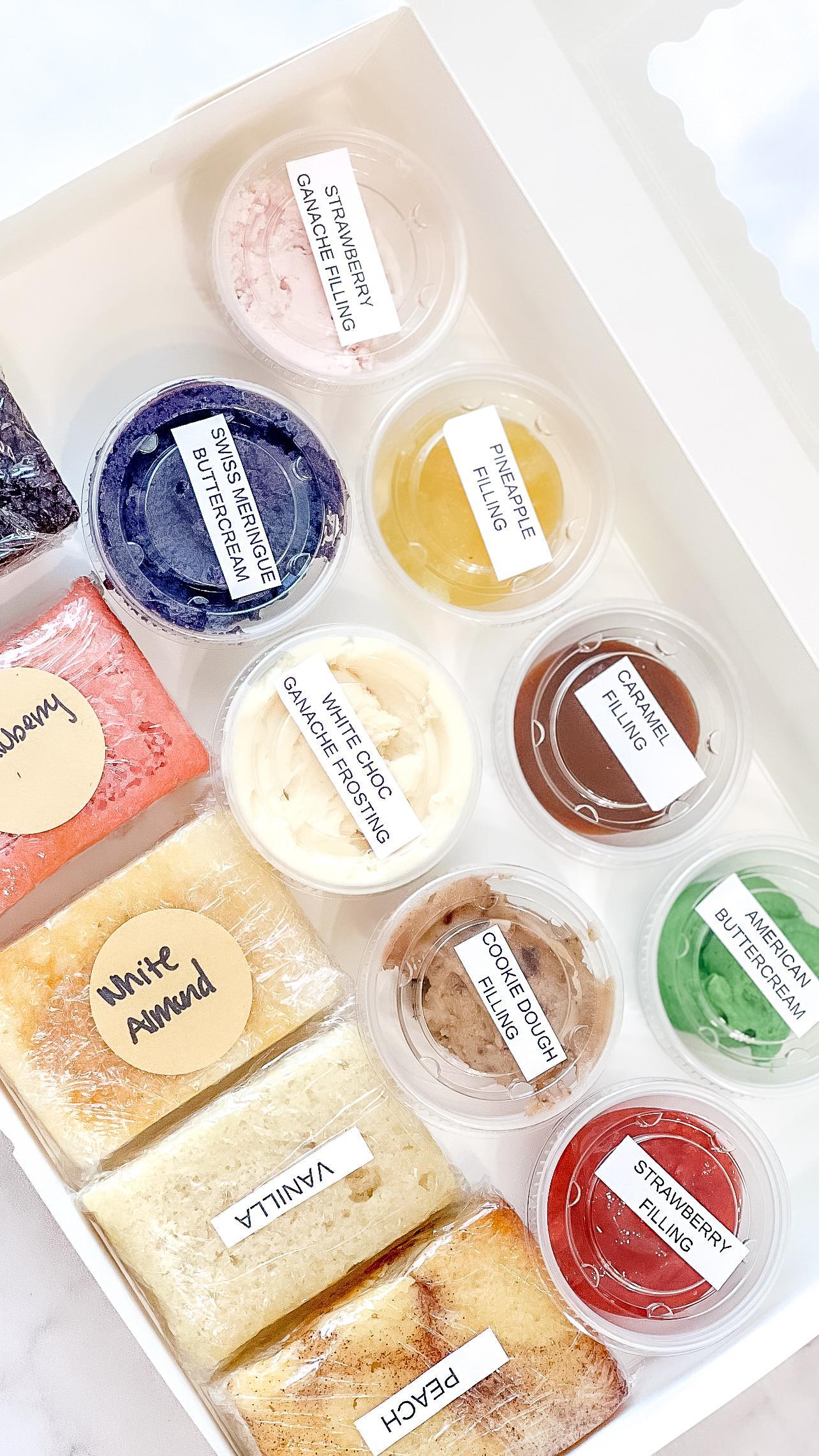 Experience Dolcelly Sweets with our to-go Tasting Box, perfect for wedding couples. Mix and match our most popular flavors to find your perfect combination. The box includes signature flavors, plus a variety of fillings and buttercream options. Enjoy the tasting at your own pace, in the comfort of your home, with your loved ones. Discover your ideal wedding cake flavors with the convenience and joy of our Tasting Box.