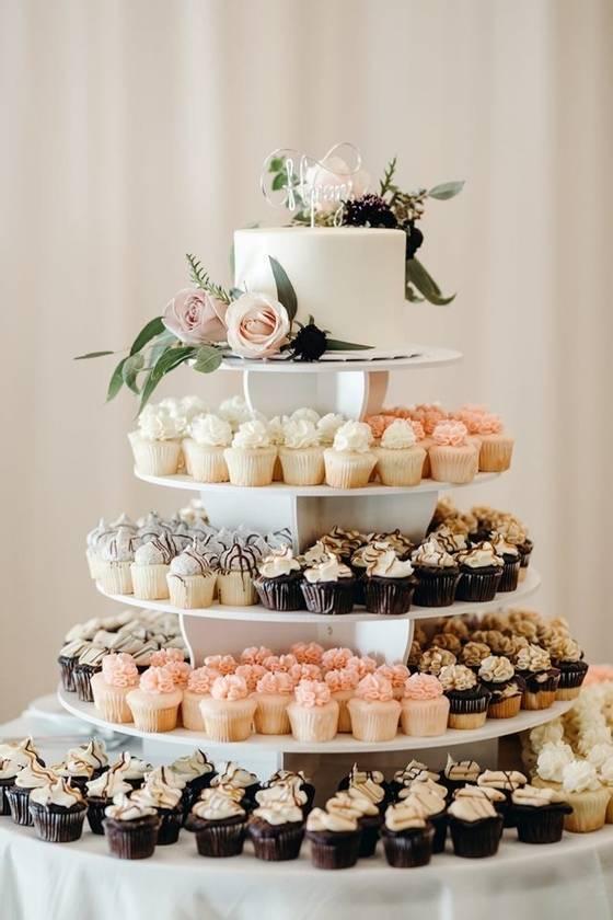We went with a small cutting cake and a bunch of cupcakes rather than the traditional tower cake. The cake was beautiful and the cupcakes were awesome, and the team was super easy to work with. HIGHLY recommend.