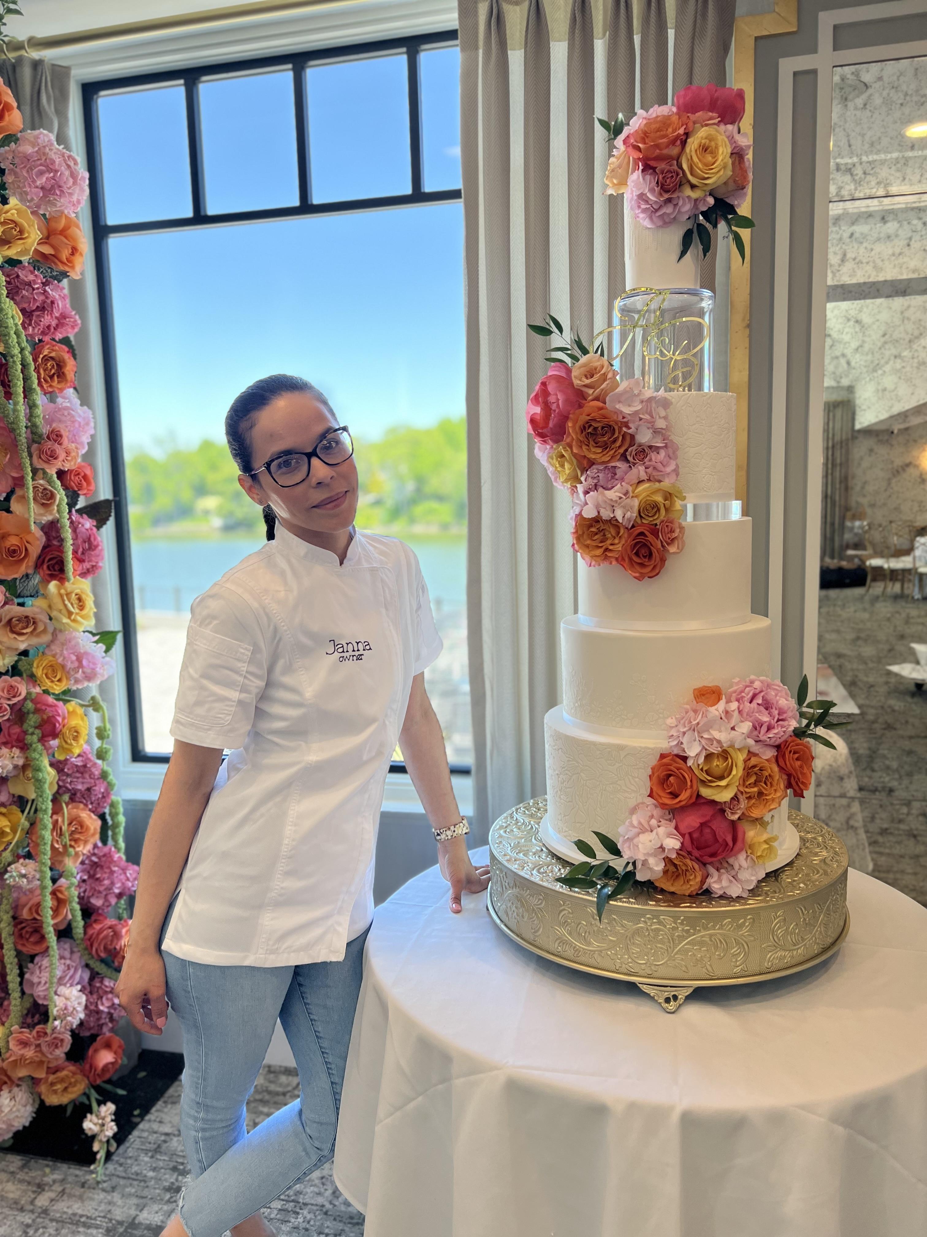 I contacted Janna to try her cakes and she made it the easiest process ever. We told her the flavors we wanted to try and she even threw in a cheesecake tasting because my husband loves cheesecake. She hand delivered the almost adorable tasting cakes and we picked our favorite. Once we had a flavor I told her exactly how I wanted it to look and she went above and beyond what I could have imagined. She even added a cake topper!!! It was the easiest process to communicate with her and also recieve a delicious and beautiful cake that made the day sparkle and shine. If you want to get a yummy cake and not have to worry at all Janna is your woman!