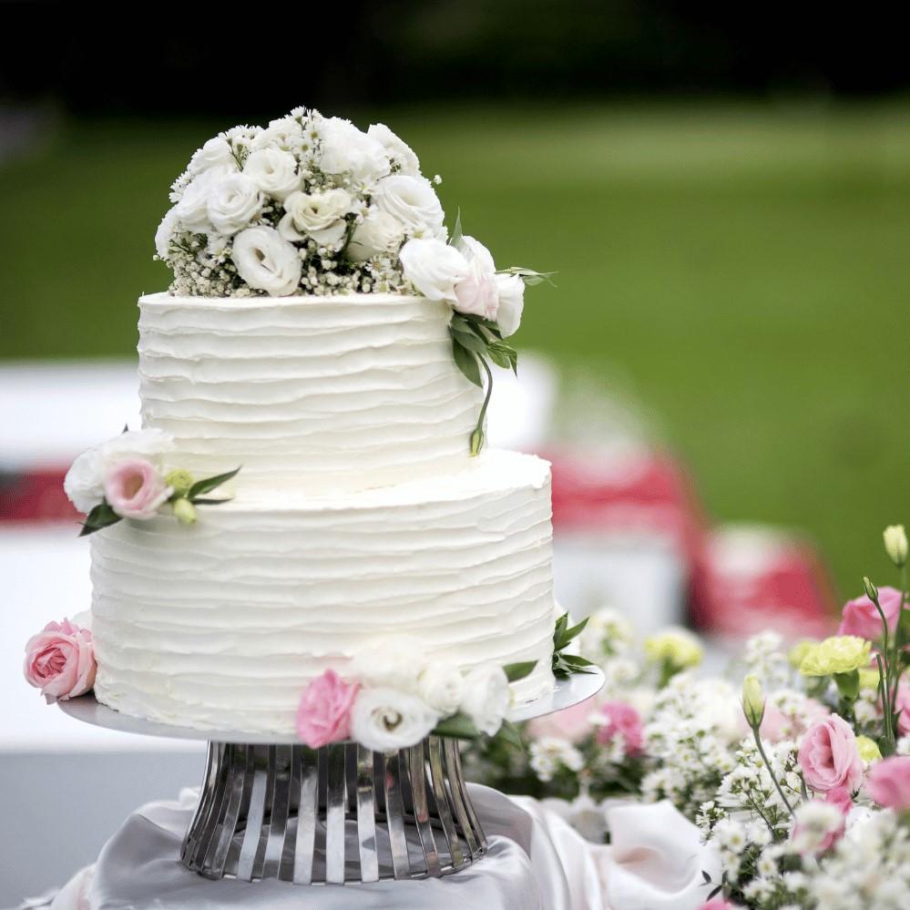 - 2 tier Wedding Cake + Dozen Cupcakes