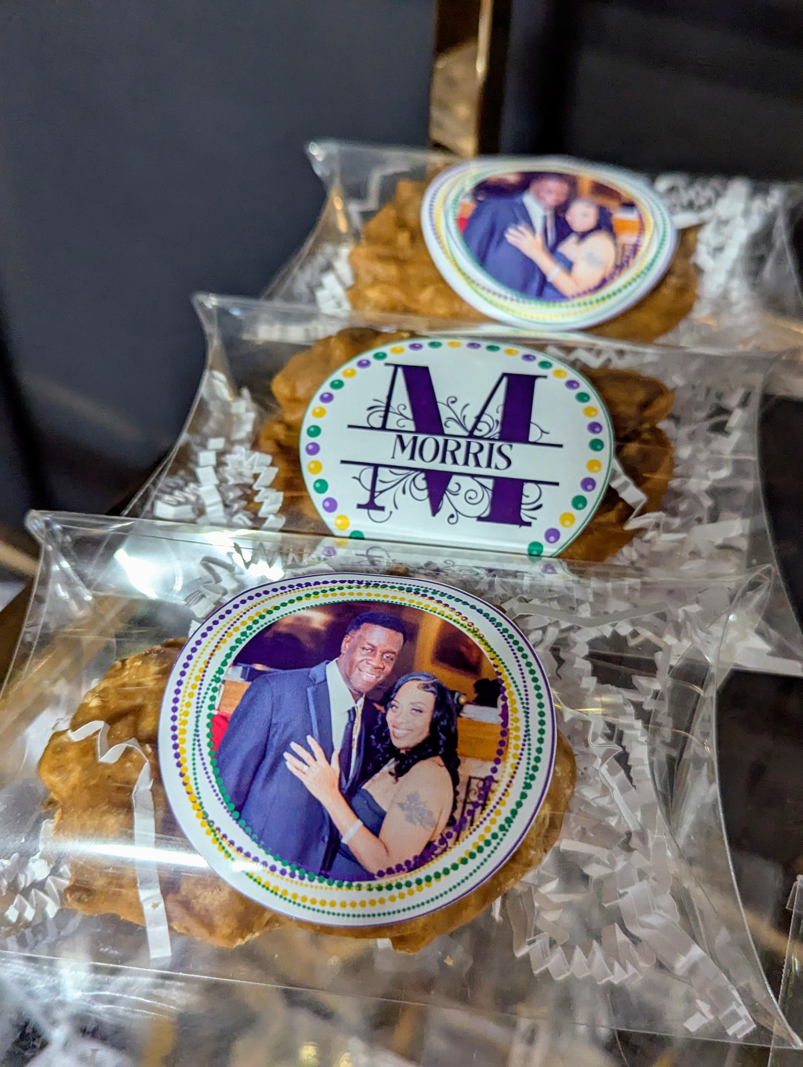 (8) dozen treats • Oreos • pretzel rods or twists • cakescicles • white chocolate popcorn pouches or pecan candy favors • cupcakes •dipped berries or cake pops • party desserts shooters ( banana pudding or peach cobbler or cheesecake) • chip bag or candy bar favors