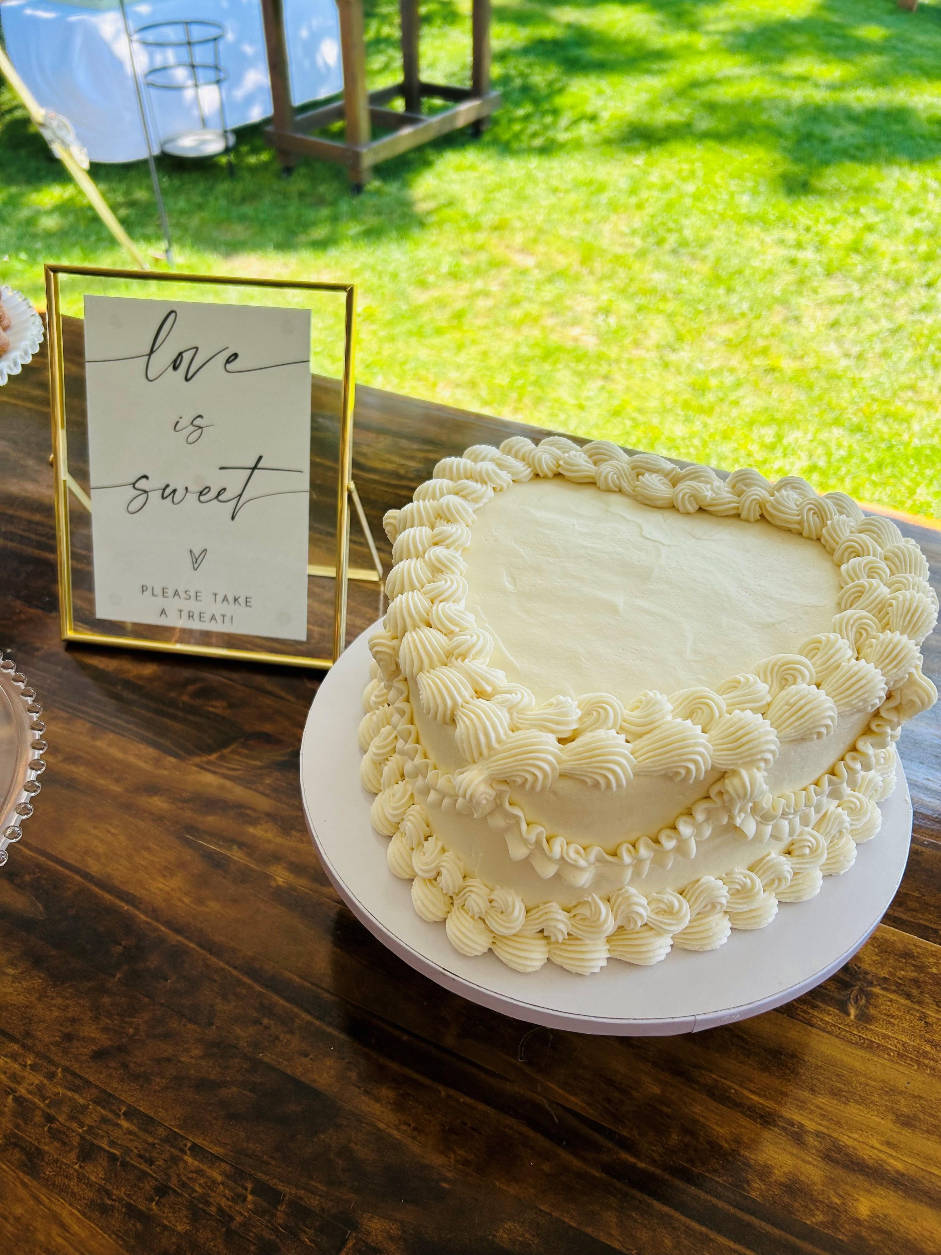 We loved working with Lara for our wedding in June! We couldn’t have imagined a more beautiful and delicious wedding cake. We really enjoyed the tasting experience and were able to pick our three favorite flavor combinations for our main cake and two sheet cakes. We’d highly recommend Lara and her team!