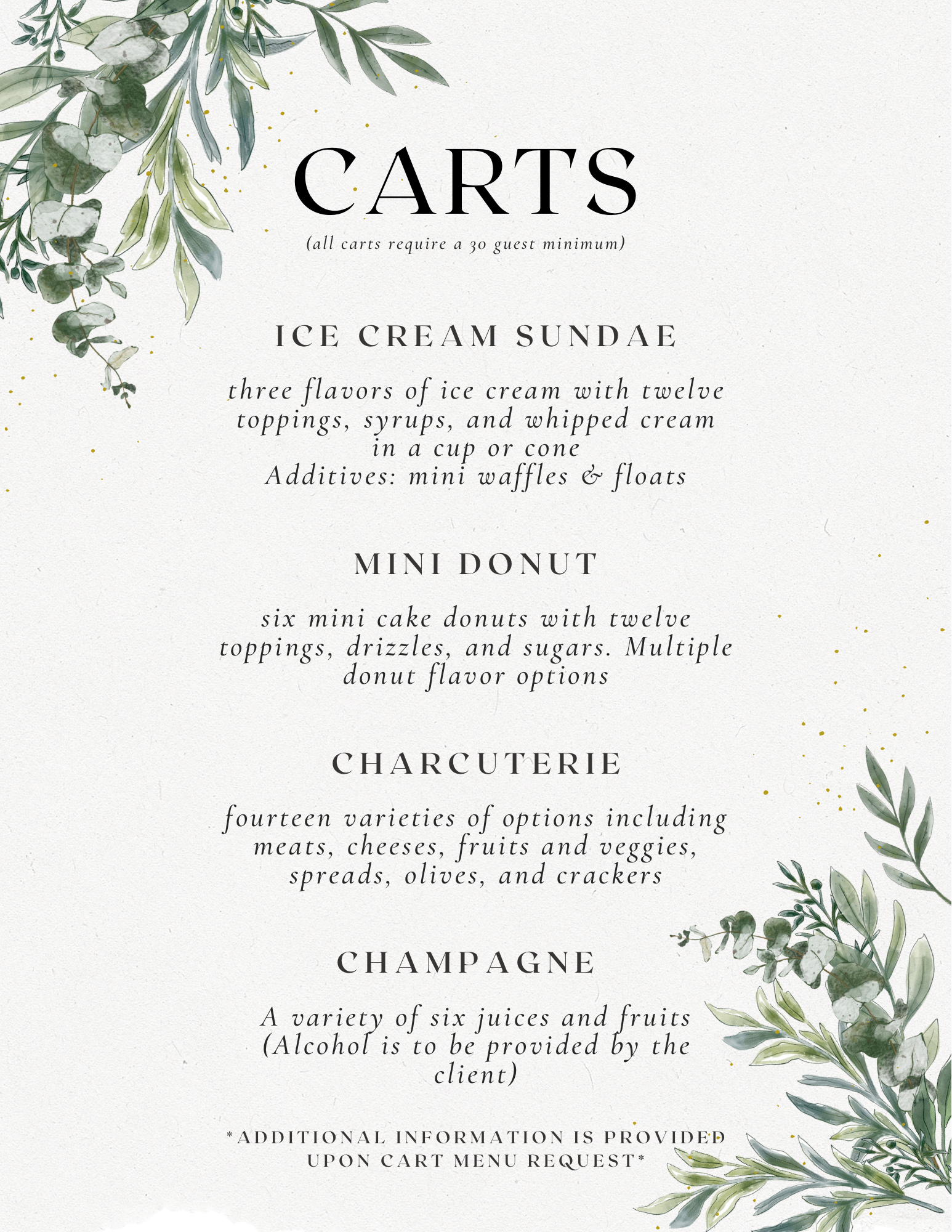 We take pride in our ability to elevate events with our cart options and the unique experience our service entails. What sets us apart from others is the personal and customized experience that we provide for our clients. We pride ourselves on providing exceptional service with the tasty and savory carts we offer!