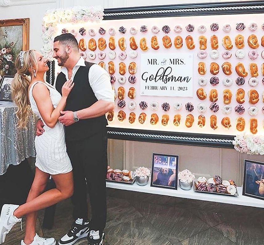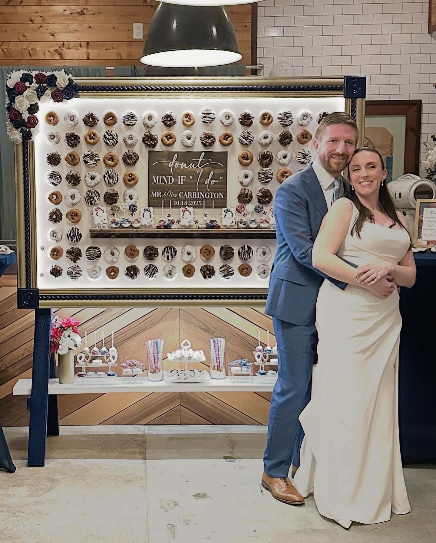 Welcome to Off The Wall Donuts, where we make every celebration a little sweeter with our custom designed, handcrafted Donut Walls & Displays. Owned and operated by John and Kate Emmets, our company embodies a perfect blend of fun, elegance, and classic charm. Each and every donut wall is a testament to our commitment to creativity and style, and results in a delightful experience for our clients and their guests. Whether it's a wedding, birthday party, corporate event, or any special occasion, our hand-created donut walls are designed to elevate each event and satisfy our client and their guests' sweet cravings.
