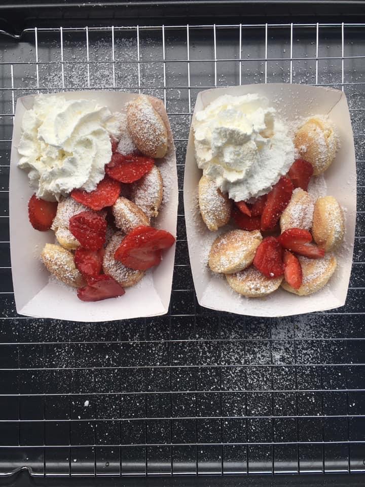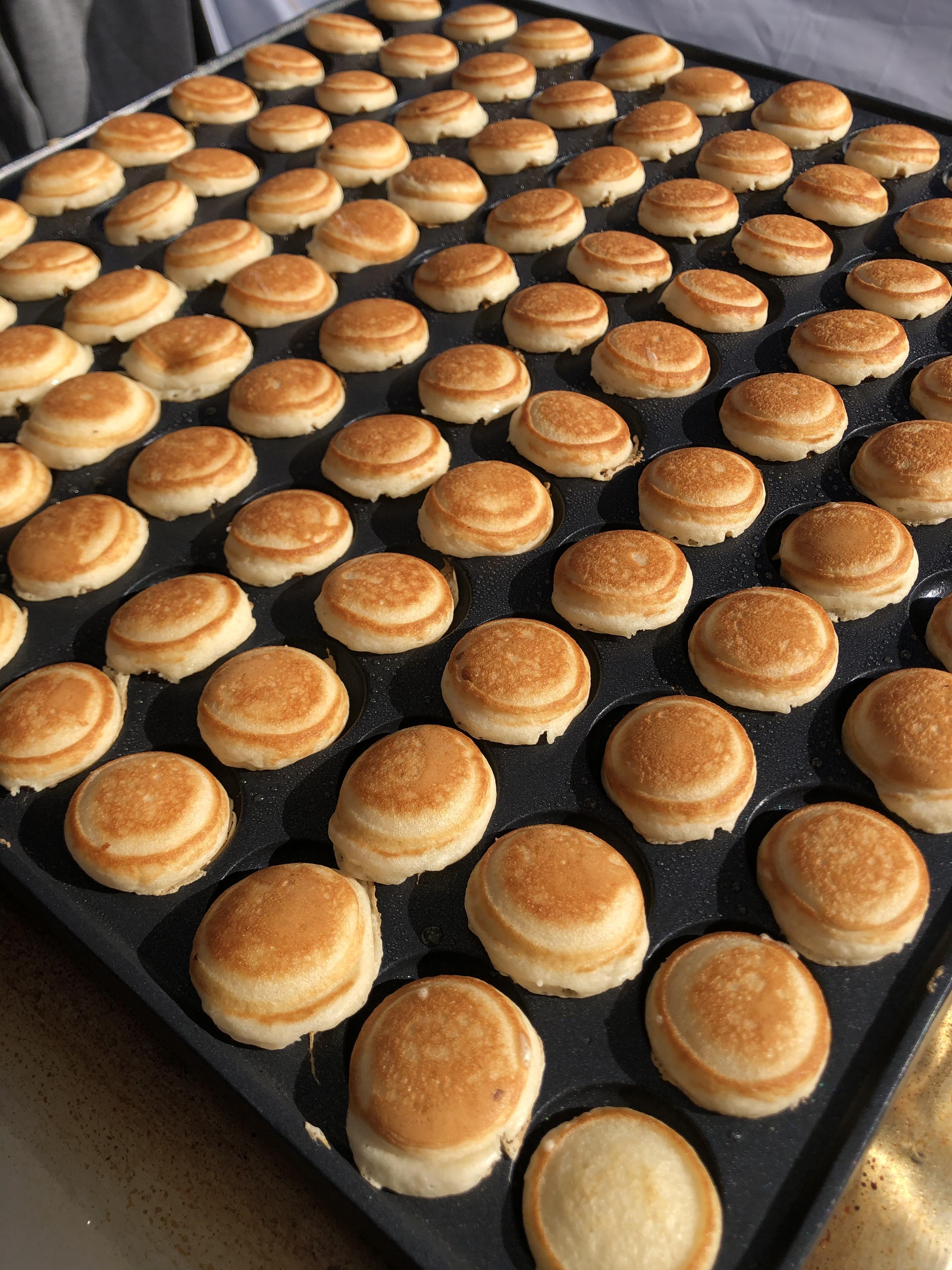 What the poff?! Freshly baked mini pancakes ​traditionally called "Poffertjes", which have origins back in the Netherlands. We serve them with delicious toppings like strawberries, blueberries, chocolate, Nutella, or whatever you like! We do pop-up’s at local farmers markets and would love to catering your special day!