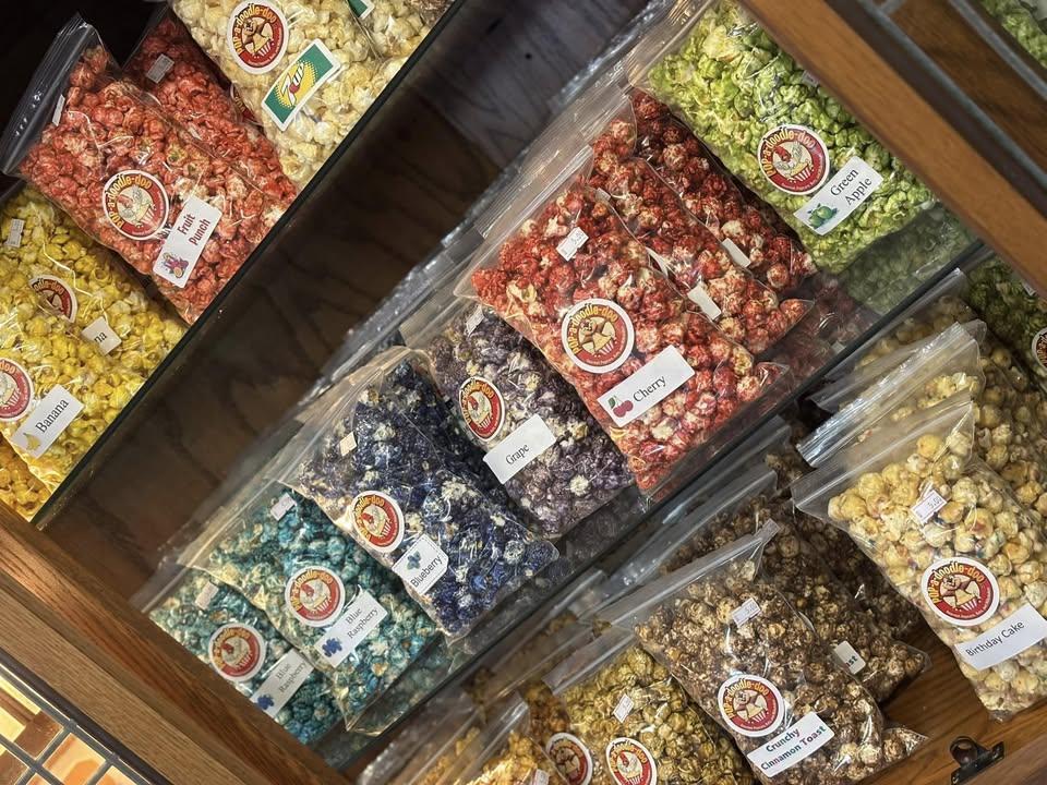 We offer over 30 flavors of gourmet popcorn in either personalized packet size, or in bulk for popcorn bars. Any of our stocked flavors are available, and we can order many flavors that we don't normally carry to suit you. Our popcorn is perfect for reception snacks, wedding favors, bridal shower favors, or gift bags for your out of town guests. We can also custom color our popcorn to match your wedding colors, or do custom mixes like the always popular and delicious "Chicago Mix."