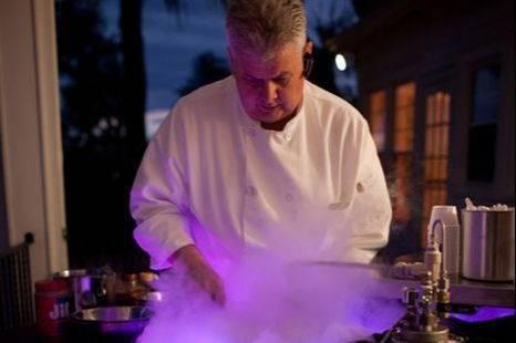 Liquid Nitrogen Ice Cream is created on the spot, directly in front of the guest. We start with high quality cream, add the guest's choice of flavors, and then blast it with liquid nitrogen, which causes beautiful billowing clouds of vapor to emanate from the bowl in spectacular fashion! At -320 degrees Fahrenheit, the liquid nitrogen flash-freezes the ice cream almost instantly, before the ice crystals have the opportunity to grow, creating the creamiest, smoothest ice cream imaginable.