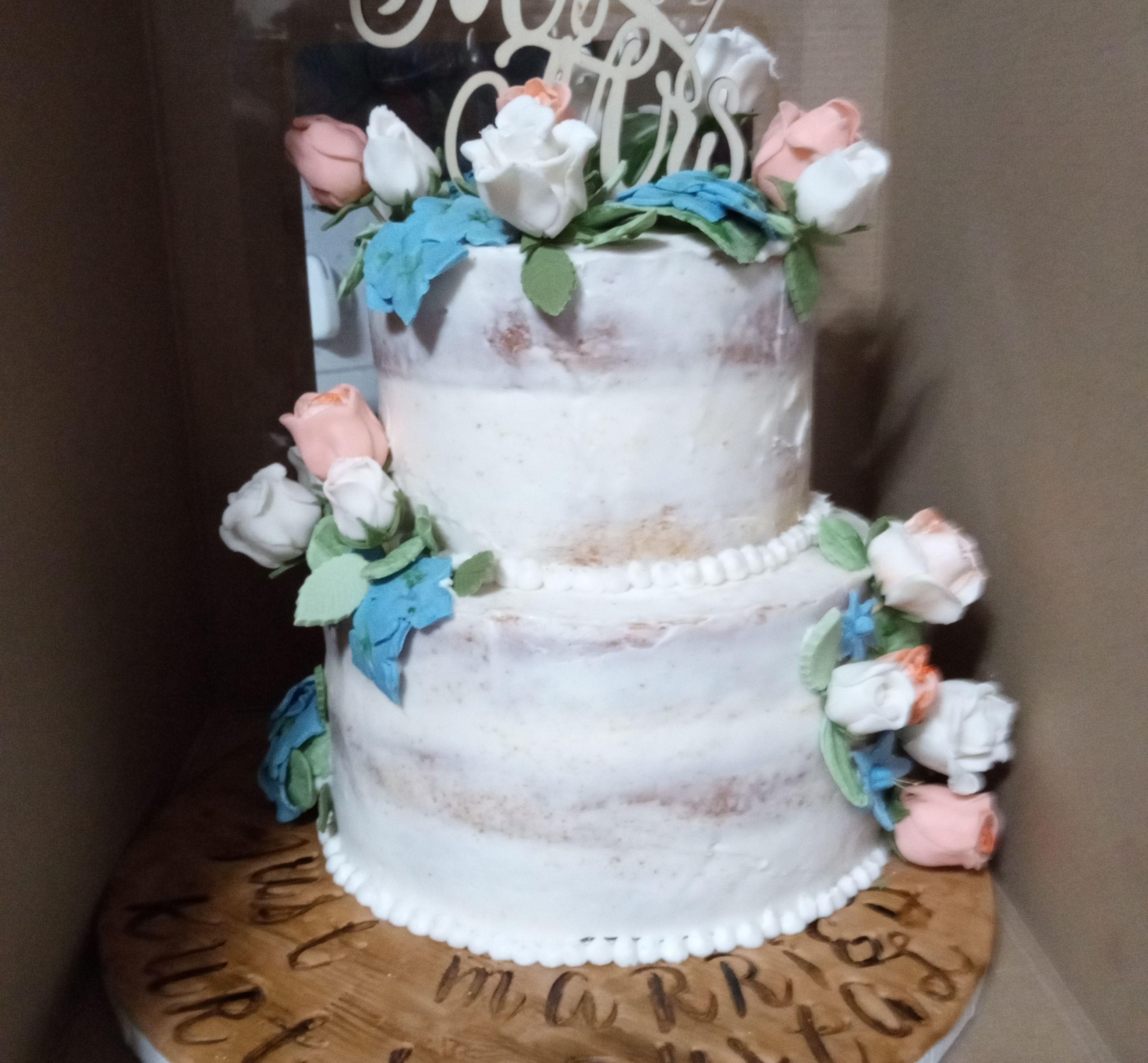 This package includes a 2 tier cake, each tier has 3 layers of cake, your choice of 2 flavors for each tier. Silk, real, or sugar flowers for decorations. Delivery & setup. Within 2 hours from Rockingham NC