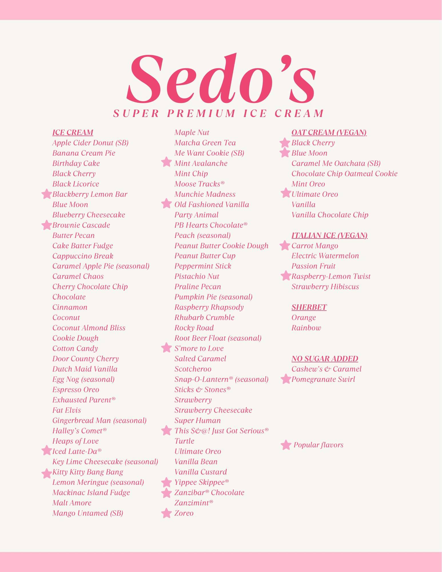 Sedo’s was an absolute pleasure to work with! Their setup was adorable and added such a fun touch. The service was top-notch—friendly, efficient, and professional. Best of all, the ice cream was a huge hit! We received so many compliments from guests who couldn’t stop raving about how delicious it was. Highly recommend!