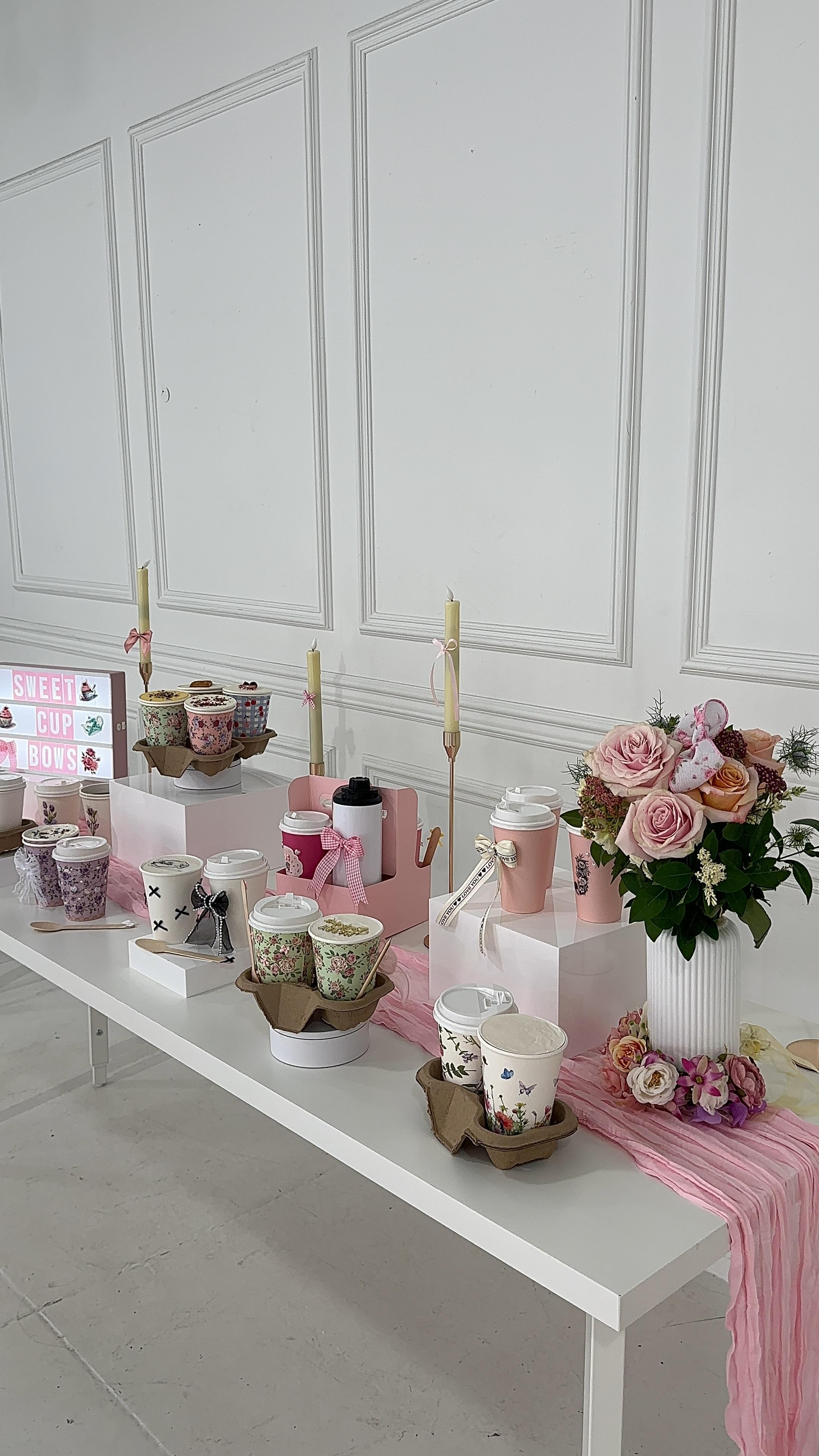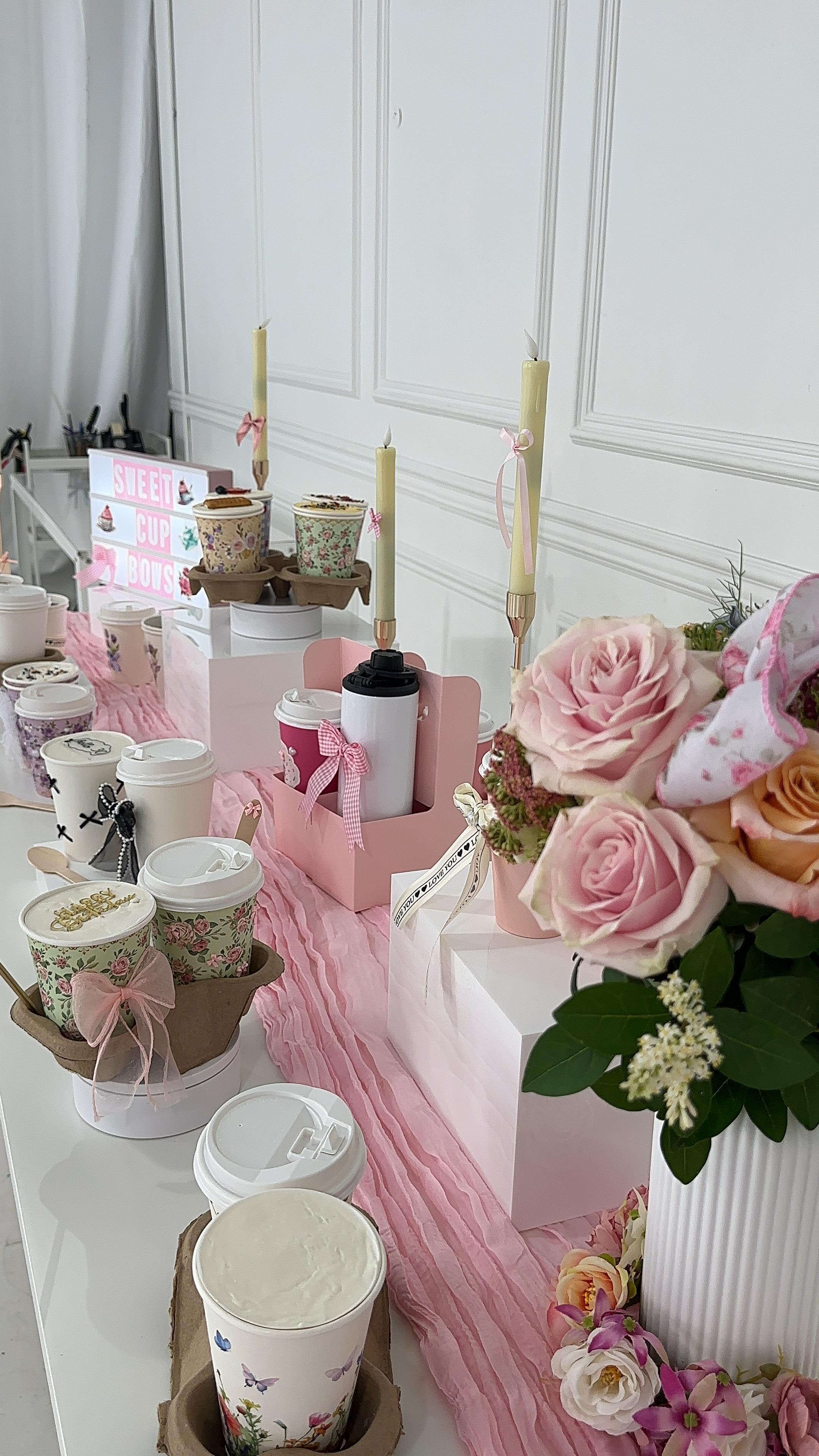 Sweet Cup Bows isn’t just tea and dessert—it’s a curated moment. Every set is styled with custom florals, bows, and hand-decorated to-go cups that feel like gifts. We specialize in making edible art that looks stunning in wedding photos and tastes even better. Whether you’re gifting your bridesmaids, welcoming guests, or offering something unique at your bridal shower, our aesthetic and flavor forward cafe-to-go moments are made to elevate your event effortlessly