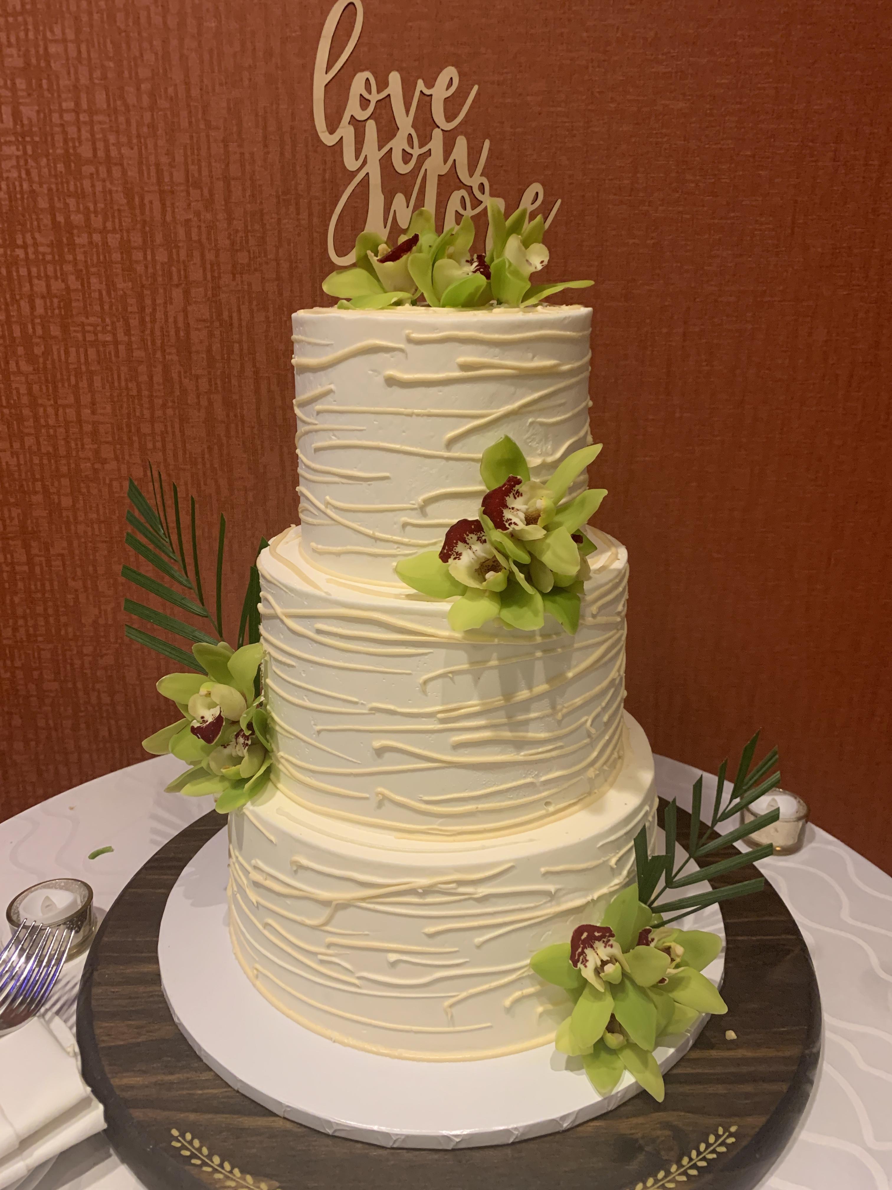 Working with The Cake Lady was very easy! She was always available for any questions and very professional. Our wedding cake was a hit with our guests! The Cake Lady Custom Cakes has many flavors to choose from and each flavor is delicious! It was difficult for my husband and I to pick just one so we chose all 4 flavors that we tasted. The Cake Lady made us a beautiful 4 tier wedding cake that matched the inspo picture I showed her. My husband and I were truly happy with our cake, it looked and tasted amazing! We will be using The Cake Lady Custom Cakes for future special occasions
