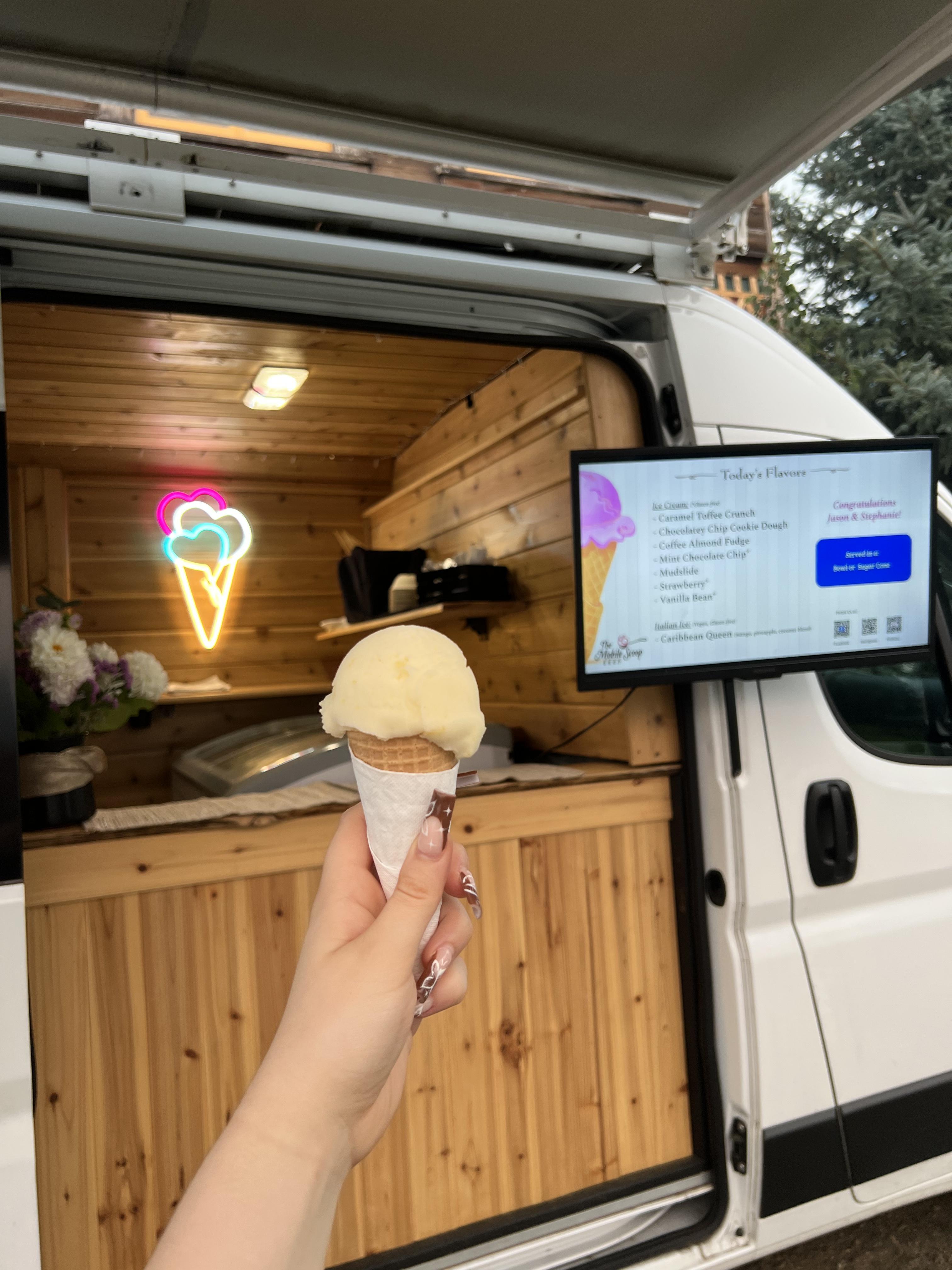 The mobile scoop shop was the perfect dessert option for our wedding and the Ice Cream truck was a huge hit with everyone. They arrived promptly and set up extra quick to start serving a little early. It was the perfect way to top off our wedding.