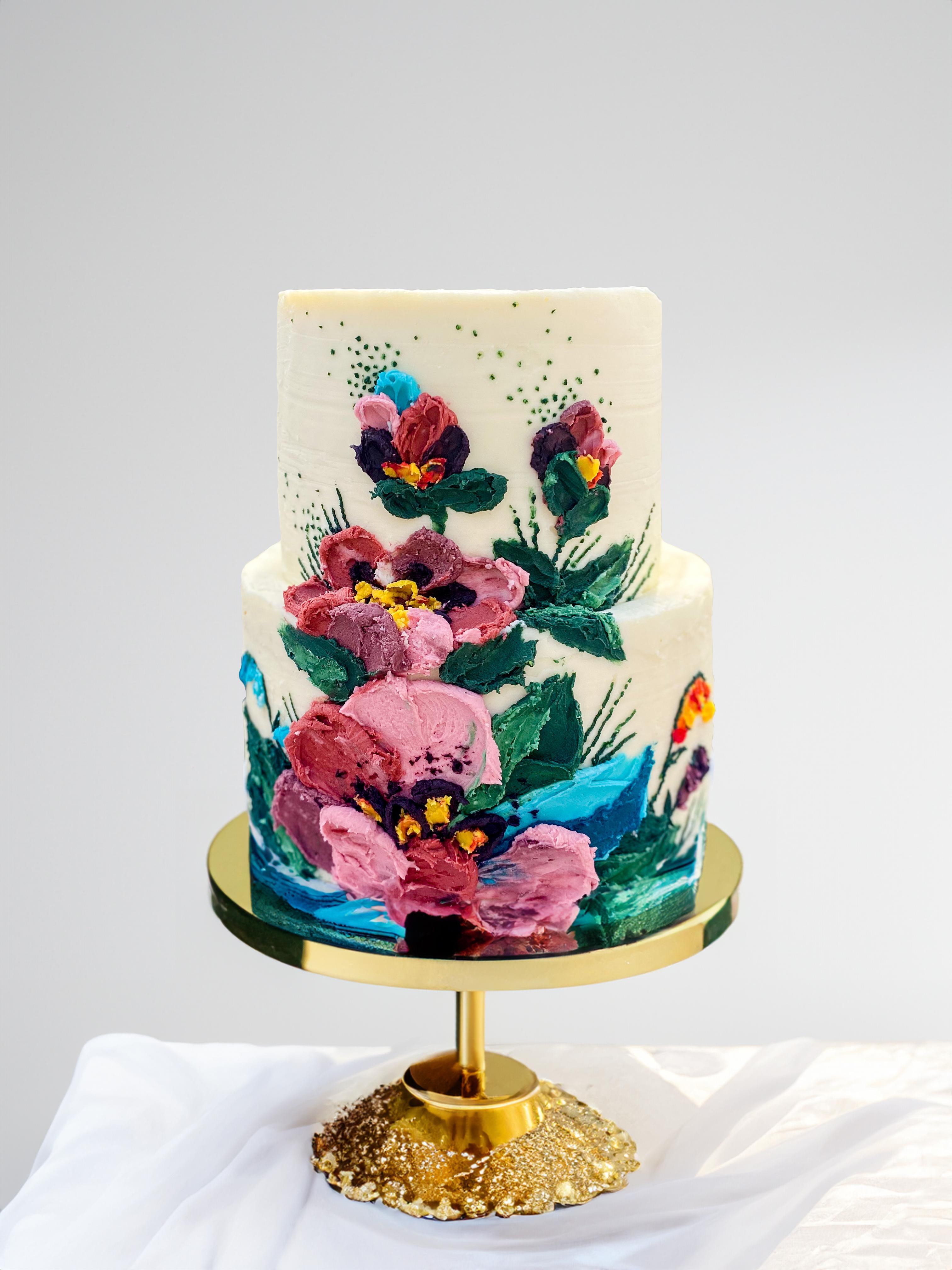 Hi! I started making cakes at the beginning of 2019 and realized quickly that I could do this ALL DAY. I love that cakes aren't just for eating. While they are soooo delicious they are also beautiful and symbols of celebration. Whether it's painted buttercream, classical piping, or ephemeral 3D florals, A cake can elevate a party, it can create a focal point, and best of all, it can be that wedding accessory that helps us create those memories we will cherish forever. I want to help bring that vision to life in a way that is unique to every couple.