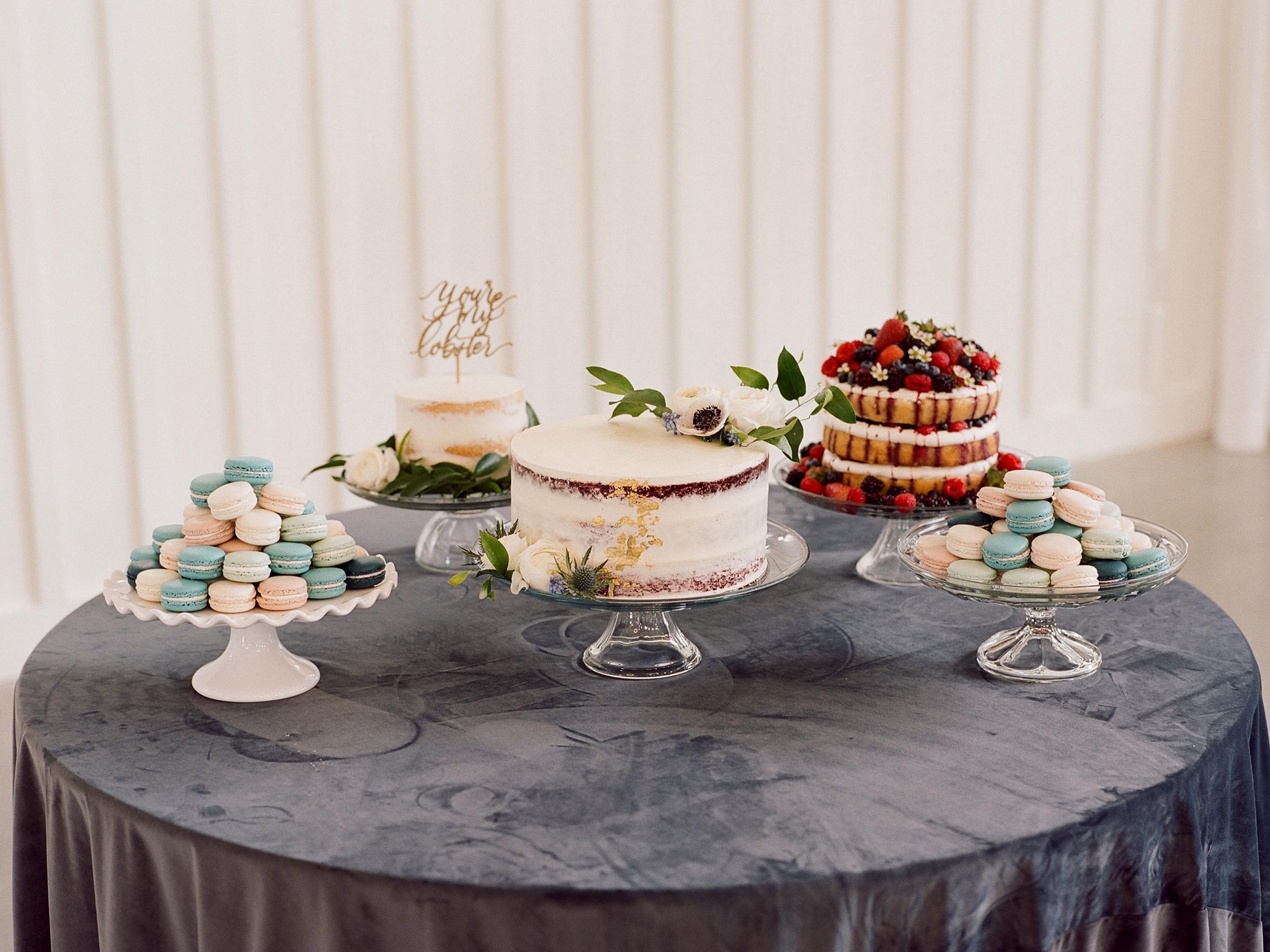 Desserts play a special part in all those great life moments – from rehearsal dinners to bridal showers to the reception itself… or simply to say "I love you" to your visiting guests, wedding party, and family. Envisioning a delectable dessert table with gorgeous macarons, donut towers, and delicious cookies? We are here to bring your dessert vision to life, whether it be an elaborate dessert table or wedding cake, or pretty little favors to thank your guests for being part of your special day.