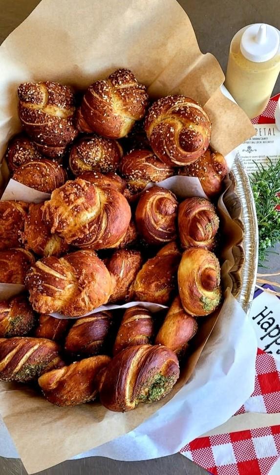 Artisan small batch pretzels perfect for sharing with groups indoors or outdoors. Pair with wine, beer, charcuterie and kid friendly. Pick up fresh baked the morning of your event and they are ready to be enjoyed all day.