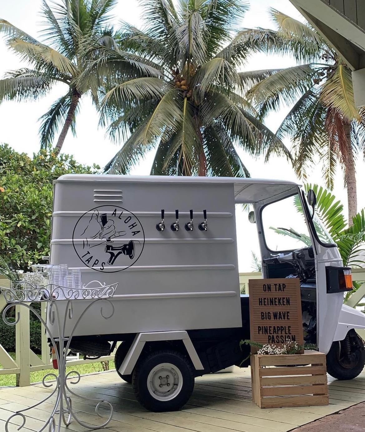 Aloha Taps is a mobile bar service based in Honolulu, HI. Featuring a four-tap system installed in their signature tuk-tuk, this company brings character and charm to any event. We proudly hold the title of Oahu’s first mobile trailer bar. We can serve almost any beverage from a keg on their taps, including beer, kombucha, or nitro cold brew coffee. Guests are sure to be captivated by this unique bar and its refreshing drinks on tap. Aloha Taps provides a full-service bar to events across the island of Oahu. Each package they offer includes bartenders to masterfully pour drinks for you and your guests.