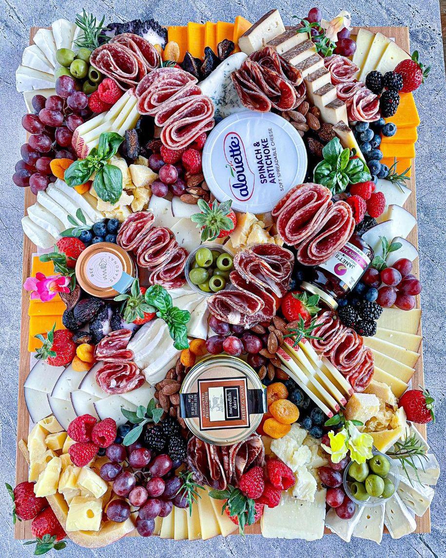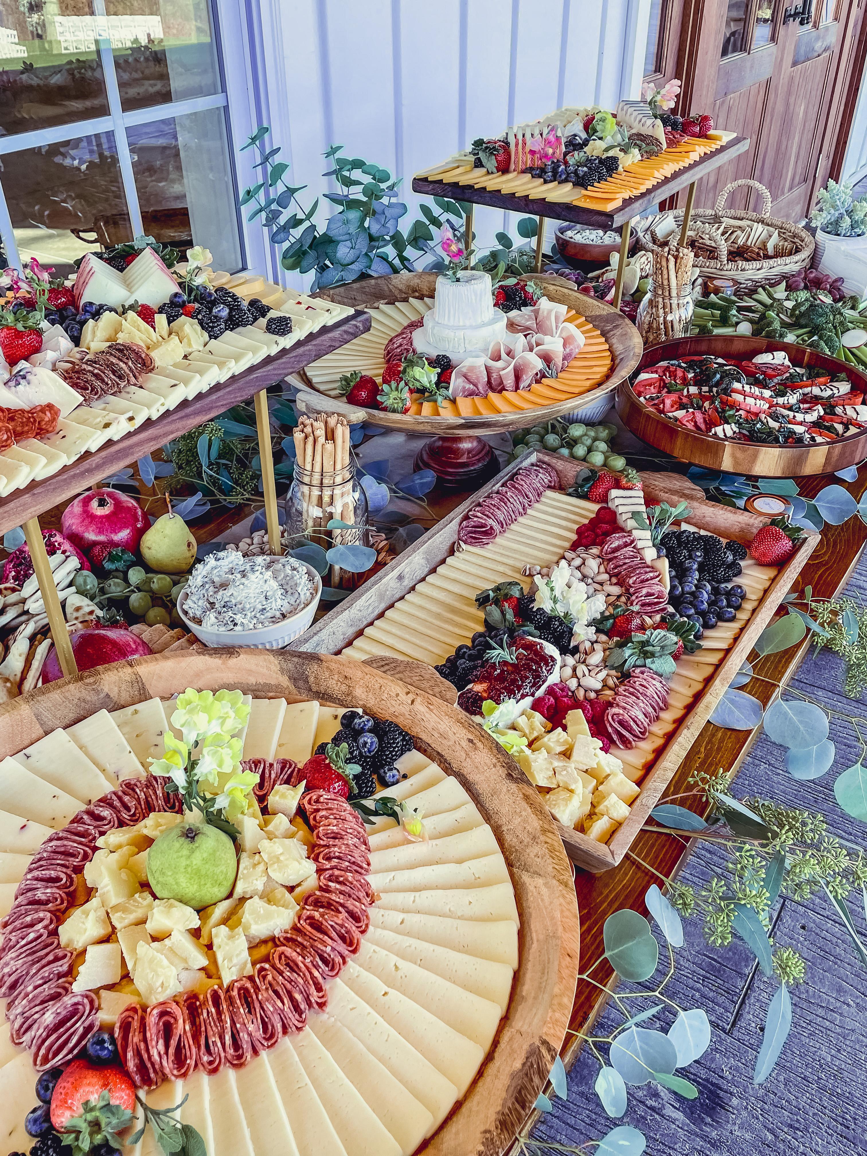 We use high-quality ingredients and unique designs to provide you with a product that is not only aesthetically pleasing but delicious. We can cater to any event, whether it's a date night at home or a wedding cocktail hour. We also love to share our expertise through classes, virtually and in-person, to provide a fun activity where you learn about the cheeses, charcuterie, pairings and how to style and create your own cheeseboard design.