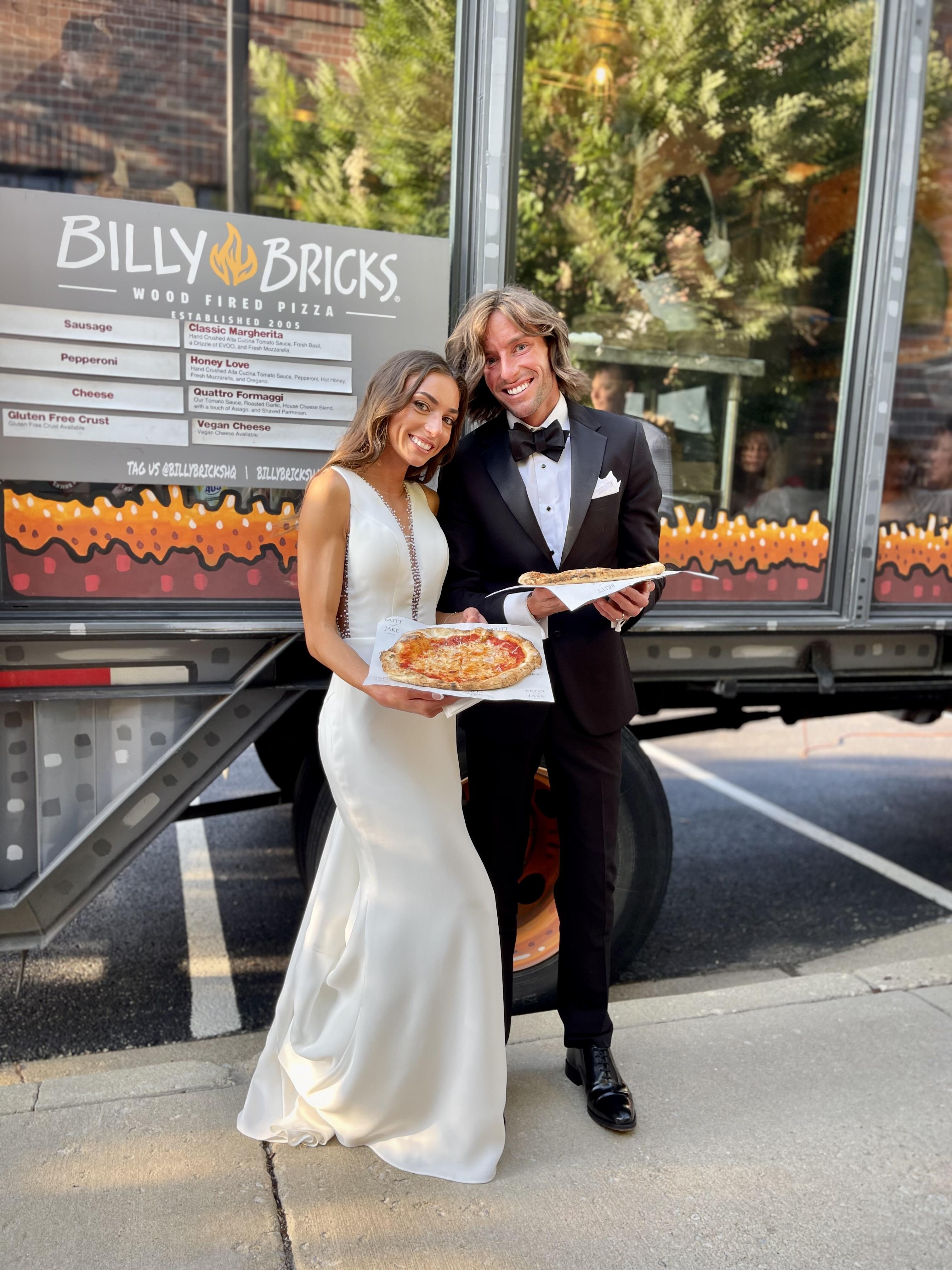When we started planning a wedding, we knew we wanted to do something “nontraditional” and a bit more us for food. Our favorite food is pizza, and we found Billy Bricks since they have food trucks which is so cute! Billy Bricks was the first “tasting” we scheduled, and also the last. The experience was so fun, and they sent us home loaded with incredible leftover pizzas too. Craig and Natalie were exceptional to work: very responsive, professional, obviously experienced, and kind. They even had a great vendor recommendation for dinnerware/silverware that helped us out a ton!!! The weather on our wedding was perfect, so they actually brought out the woodfire stove and cooked everything right in front of our guests. Becca and the team were so kind and lovely day-of so thank you! And we heard so much positive feedback from our guests on the food, how good it was for a wedding, and the variety! The ice cream was INCREDIBLE. It was everything we could have wanted, and we are so grateful to the team. Thank you!!!