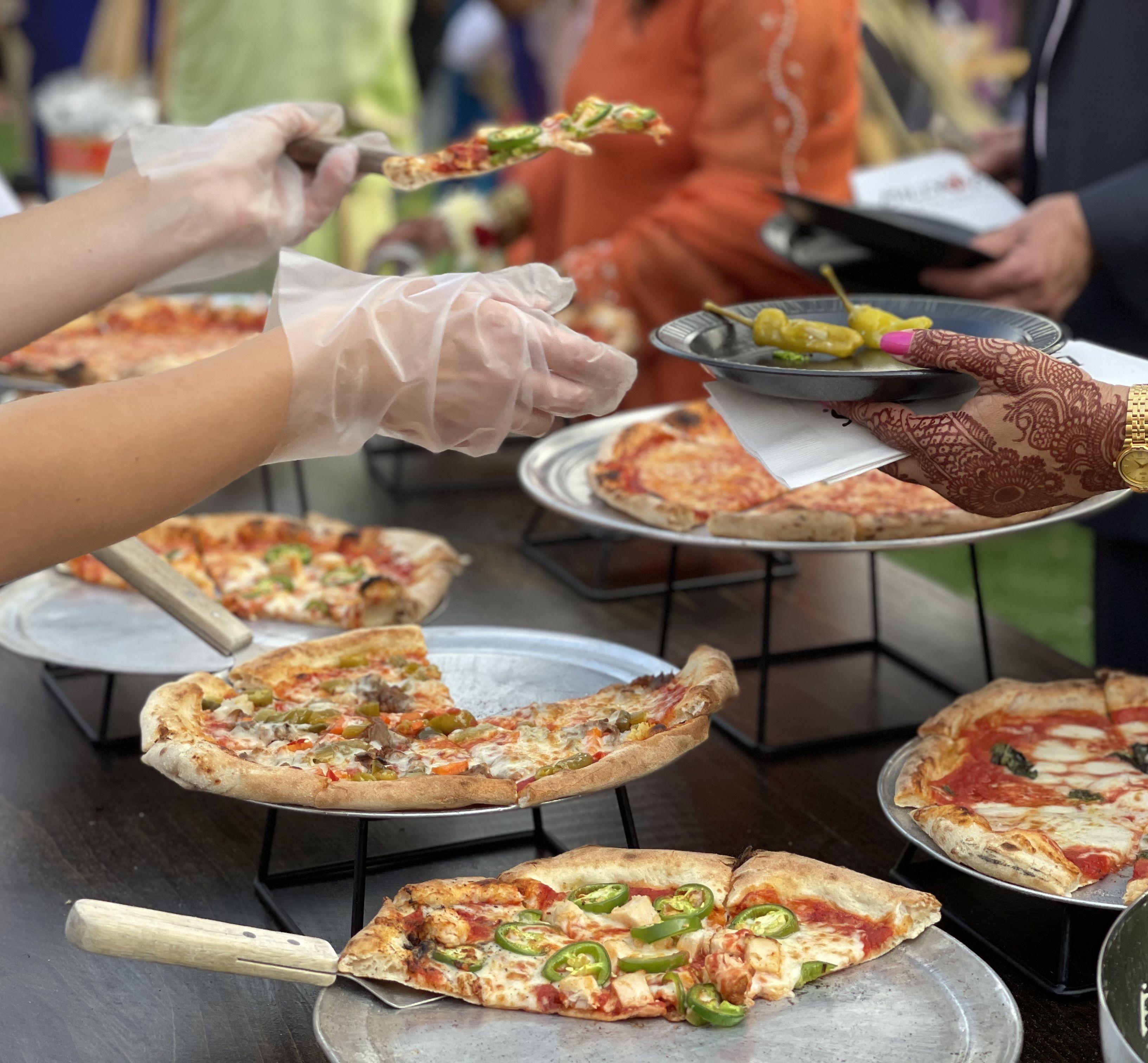 Wedding catering should be what YOU want! Your special day deserves more than a standard catering service, like the usual chicken or fish – it deserves a charm that is unique to you! Curate your very own menu and watch as we turn the art of pizza making into the highlight of your night. Imagine the fun of our pizzaiolos tossing dough, the live action of crafting each pizza on-site, made with industry-leading ingredients like Le Stagioni 00 Flour, Boar’s Head Meats, and Grande Cheese. Enjoy a quality-centered dinner service and fresh GF/Veg options. From the first app to the last savory slice, our team adds a fun & interactive touch!