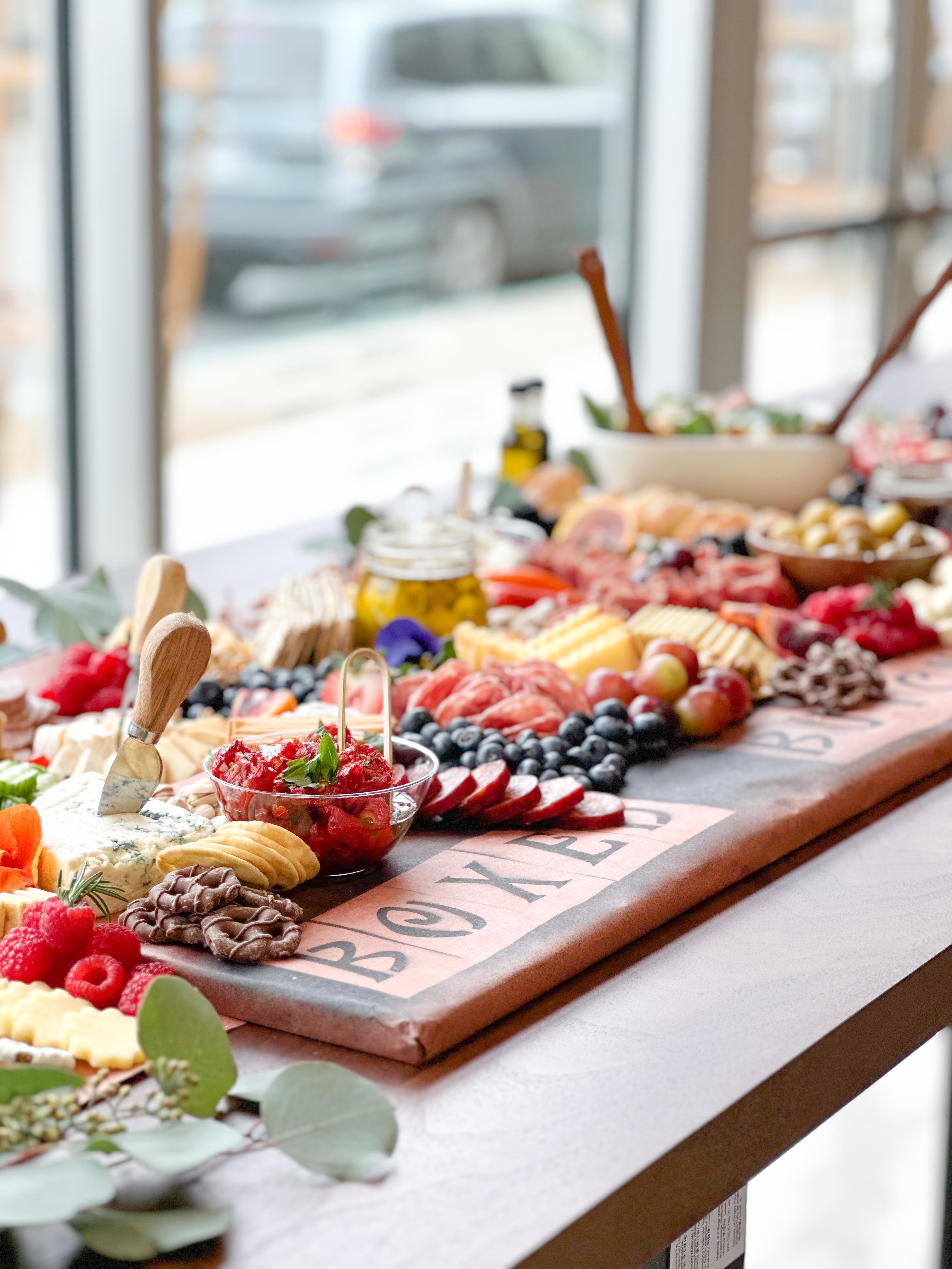 At Boxed Butcher, we believe that sharing good food should be an experience. Whether you book our food truck or allow us to cater your next event, our modern twist of charcuterie delights are stacked into perfectly curated boxes that appeal to every pallet! We hand-select and intentionally place the freshest ingredients, which vary based on seasonal availability, making every effort to support other local small businesses. Each box, table, board and platter contains "stacks" of artisanal cheeses, cured meats, seasonal and dried fruits, fresh vegetables, crunches, and spread.