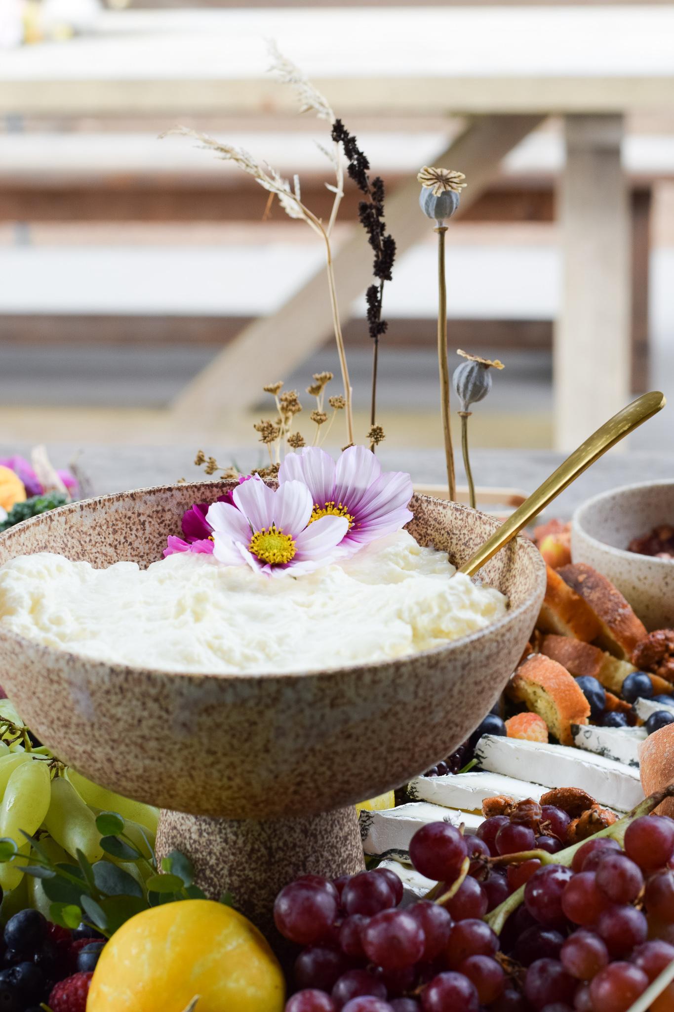 Our Grazing Tables are intended to celebrate the true cheese lovers + the real foodies. You won't find any Trader Joes or Costco finds in our offerings - we exclusively work with small-batch domestic artisans + local farmers to bring you the absolute best of the best. Our Grazing Tables are anchored with a wide variety of domestic artisan cheeses + cured meats; fresh bread, crackers, seasonal local fruit, california-grown marcona almonds + olives, house-made butter, preserves, and other local, seasonal accoutrements all play a supporting role. Garnished with herbs, foliage, + florals, all sourced from local flower farmers.