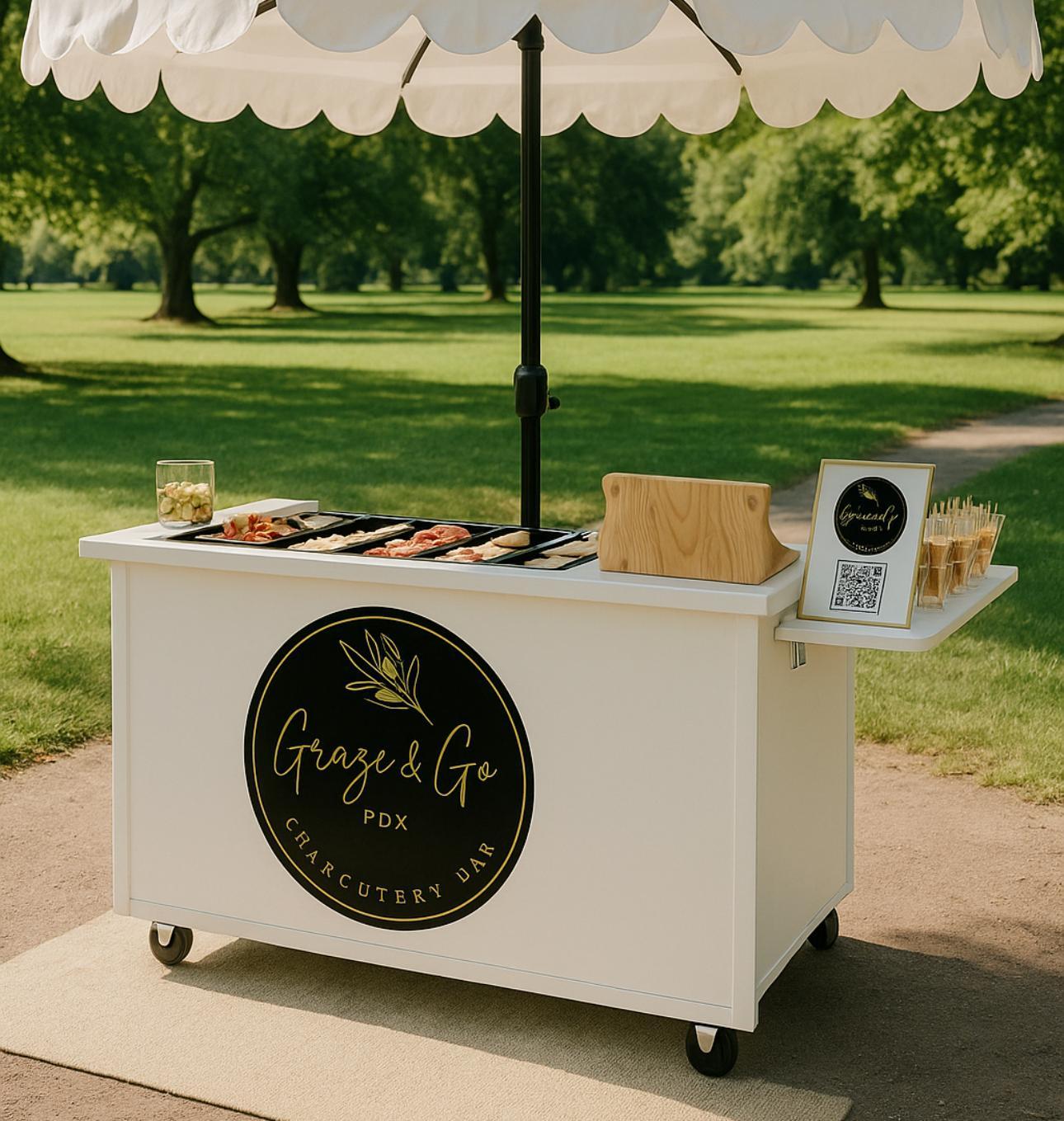 Graze & Go PDX was an excellent choice for our wedding happy hour. From the start, Simona was very friendly and answered all of my questions promptly and replying to my email the same day. On the day of the wedding, the Graze & Go team arrived early and were incredibly professional. My guests were so impressed with the beautiful charcuterie cart they set up - it had a great variety of delicious, fresh cheeses and meats and fresh fruits. I love the idea of a mobile cart instead of a big table, as it kept the food more hygienic and visually appealing. The cart was such a hit, with many guests asking for Graze & Go's information. Simona and her team truly helped make our special day even more memorable.