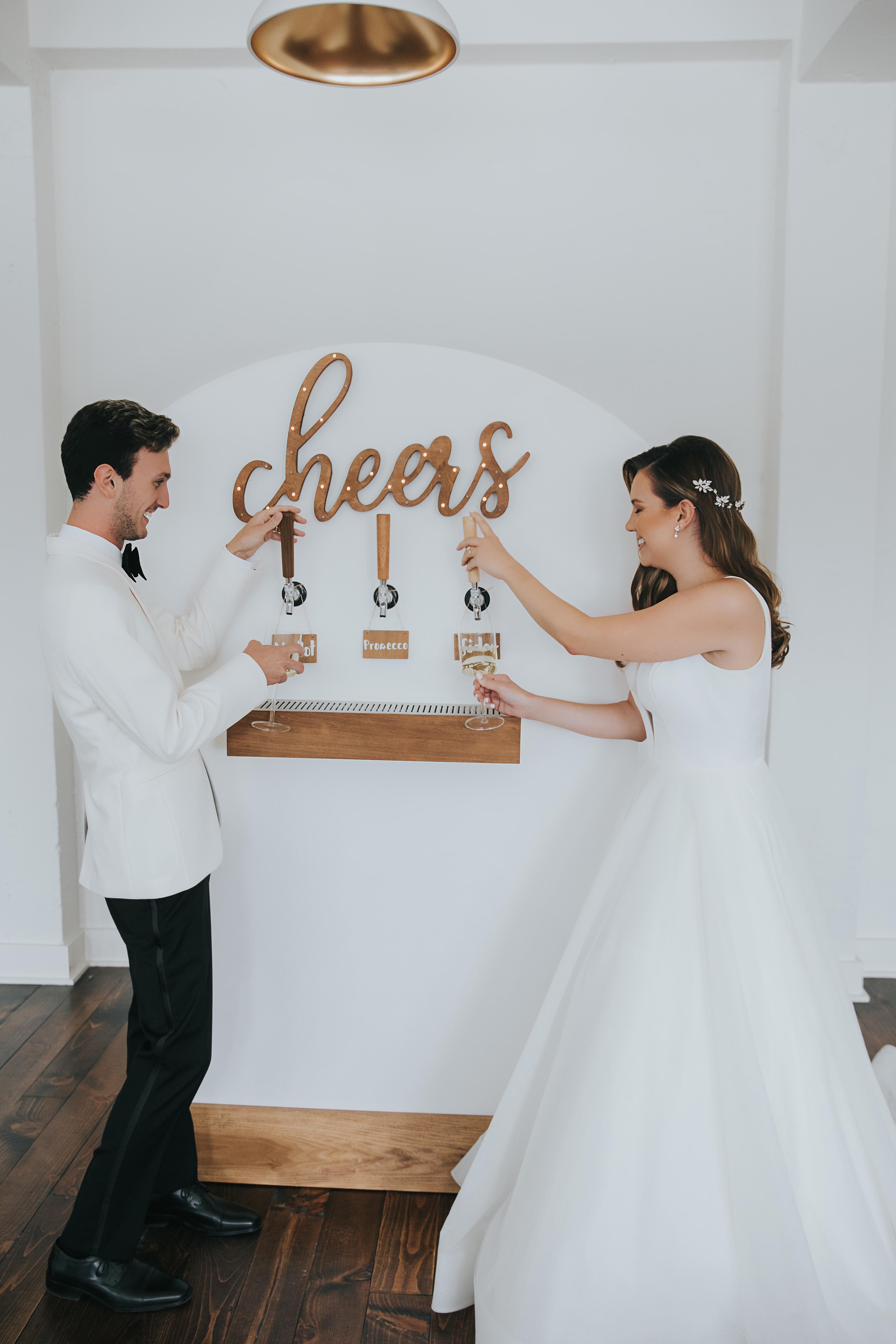 In addition to providing snazzy dressed bartenders, we have a number of add-ons to make your bar perfect! These include draft bars for serving beer, wine or cocktails on draft, champagne walls, customized koozies, cornhole, glassware rental, and more!
