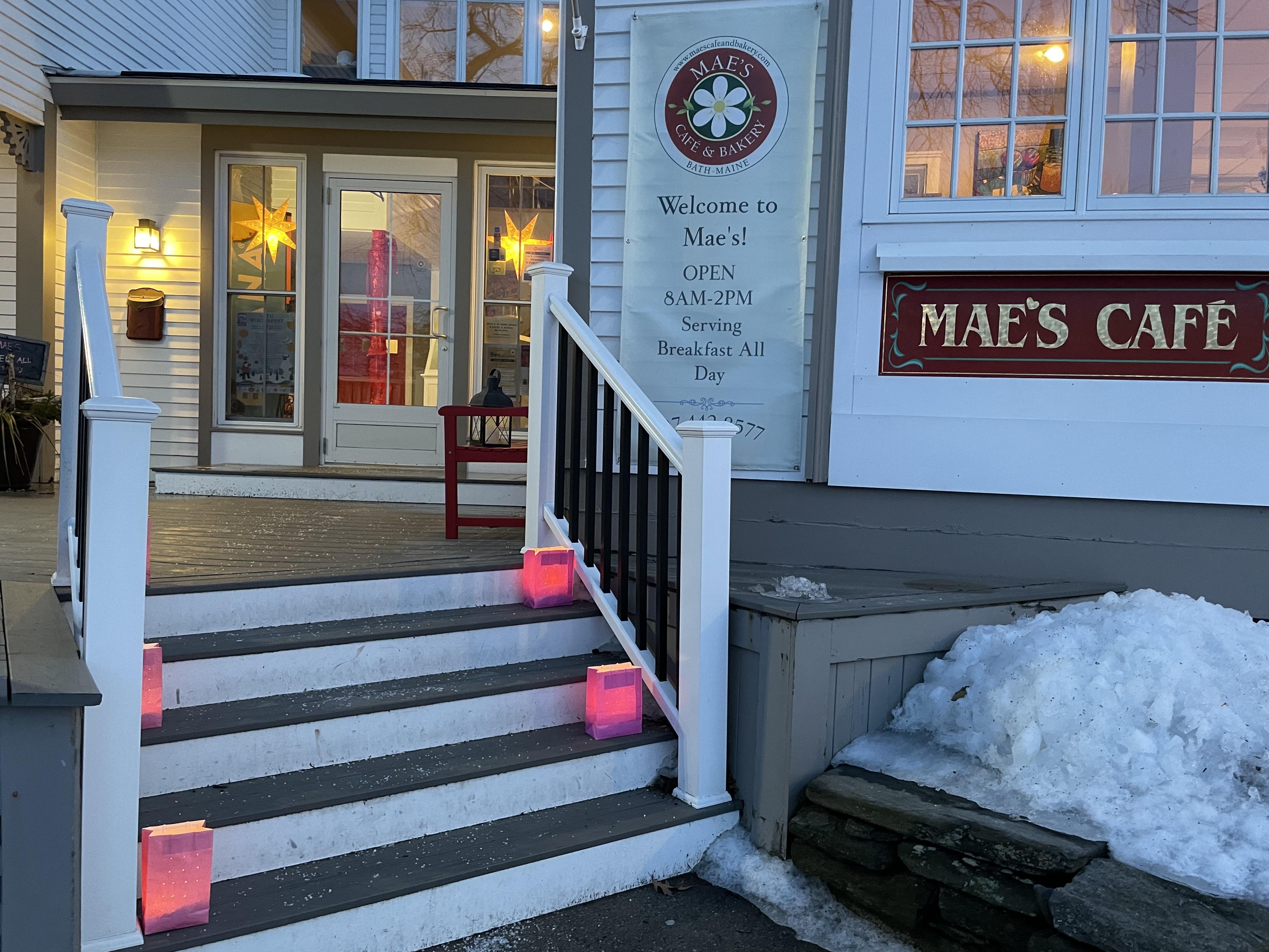 We opened our doors in July of 2004 and quickly became Bath’s neighborhood Restaurant and Bakery. We take great pride in our delicious, home made food,friendly staff and comfortable atmosphere. Mae’s Cafe supports area arts and education programs as well as other organizations that make Bath and its surrounding communities such an amazing place to live