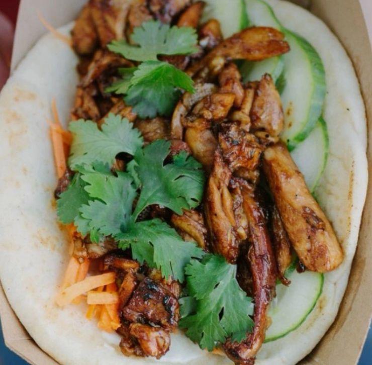 Jarett Eymard and Rachel Carr Eymard bought a bread truck and converted it into a food truck in their back yard just in a couple of months! Jarett came up with the clever name 'Rue Chow' translating to 'street food' and it just stuck! Both of them are professional Chefs so you can expect to find classics with a fun twist at their truck like the chicken and waffle sandwich and Korean BBQ Chicken Pitas. They are cooking all over town.