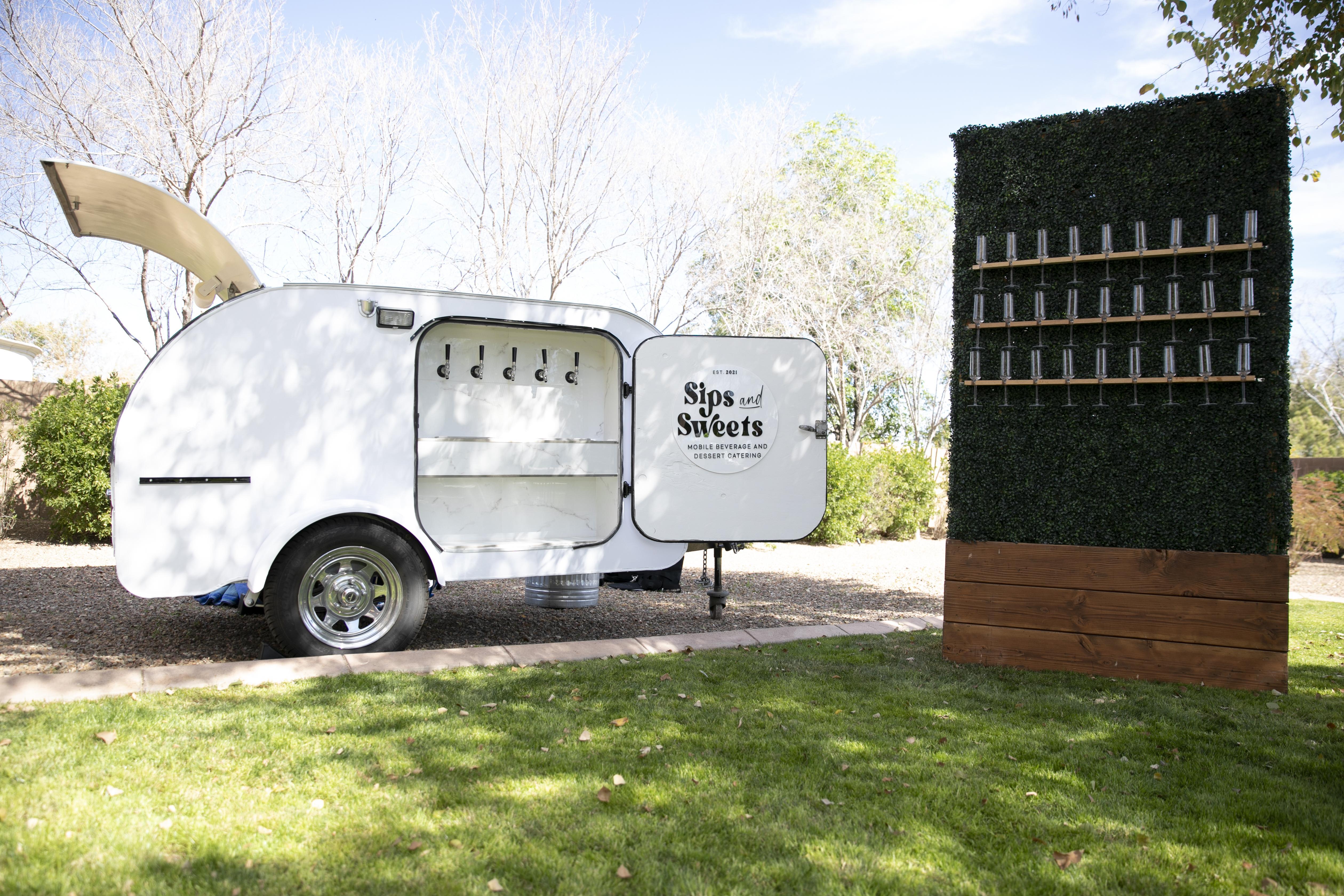 Sips and Sweets is Arizona’s sweetest mobile dessert and tap beverage catering company! Our 1967 renovated teardrop trailer has 5 taps with the capability of serving up to 5 different beverages of your choice, including beer, champagne, wine, and cocktails! Don’t drink? No problem, we can serve non alcoholic beverages as well. Our unique dessert and beverage display will no doubt be the focal point of your next event. This tap and dessert display on wheels provides a unique, social, and interactive aspect to your event. Our trailer fits into just about any space, and is sure to make your next event a memorable one!