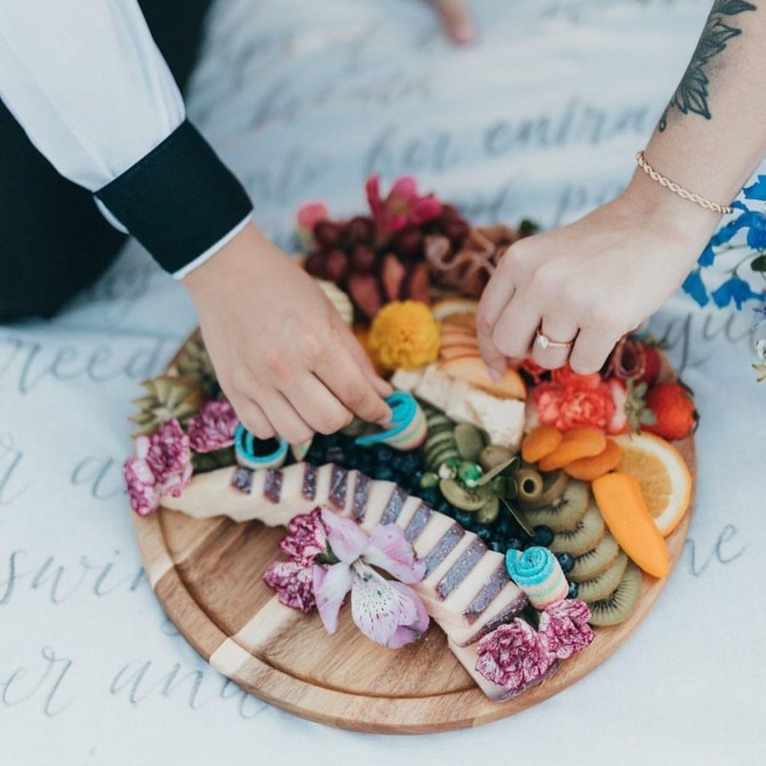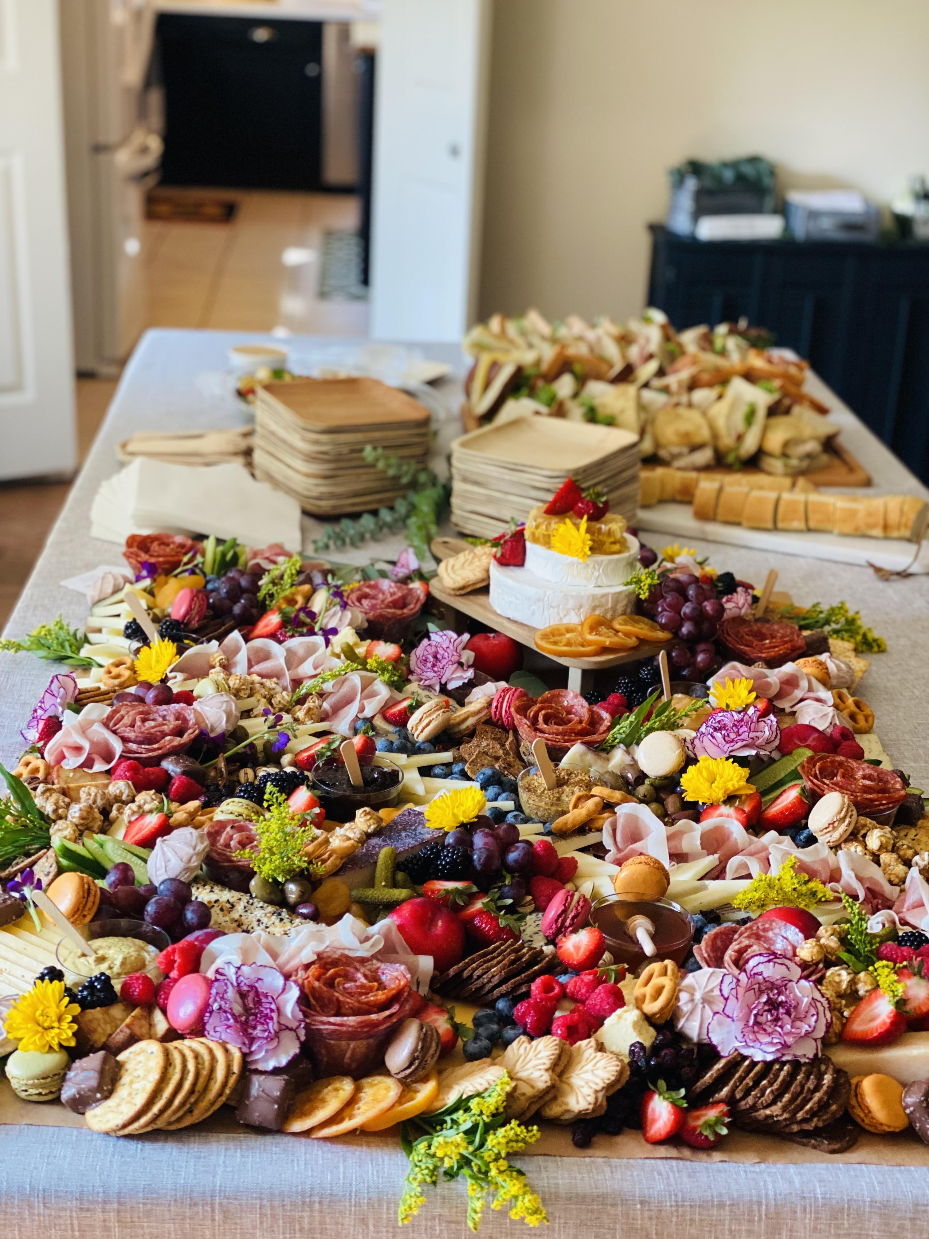 Our grazing tables come hand curated for each and every event! We pride our self on sourcing & using local ingredients. All grazing tables are served with biodegradable utensils, plates, napkins. Each grazing table is complimented with assorted cheeses and cured meats. Fresh fruit, fruit chutney/jams, assorted mustard, honey/honeycomb, dried fruits, nuts, olives, assorted crackers, breads, and floral.